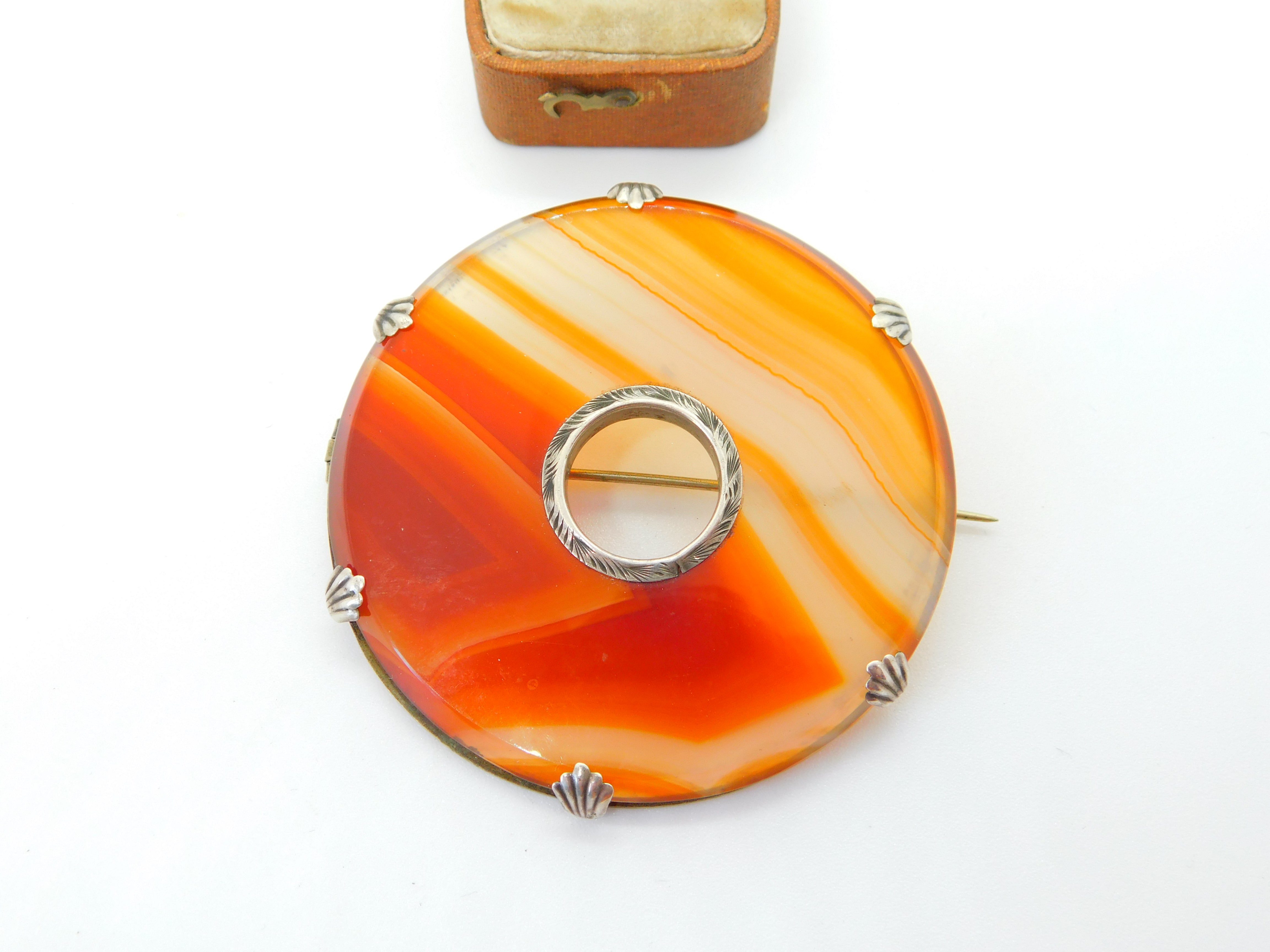 Large Victorian Scottish Sterling Silver Red Agate Kilt Brooch c1880 Antique