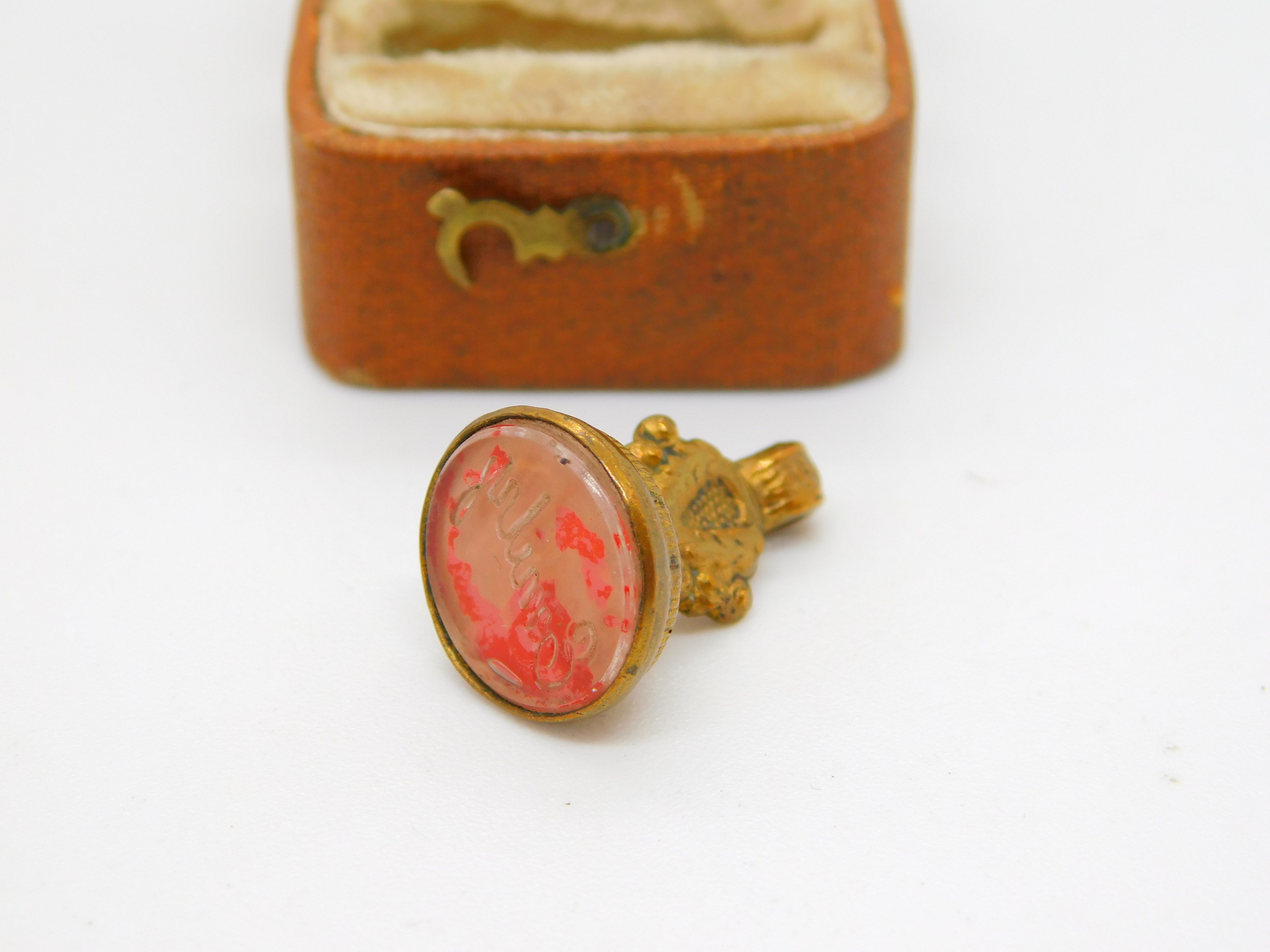 Victorian Gilt Metal & Carved Glass 'Emily' Intaglio Fob Seal Antique c1880