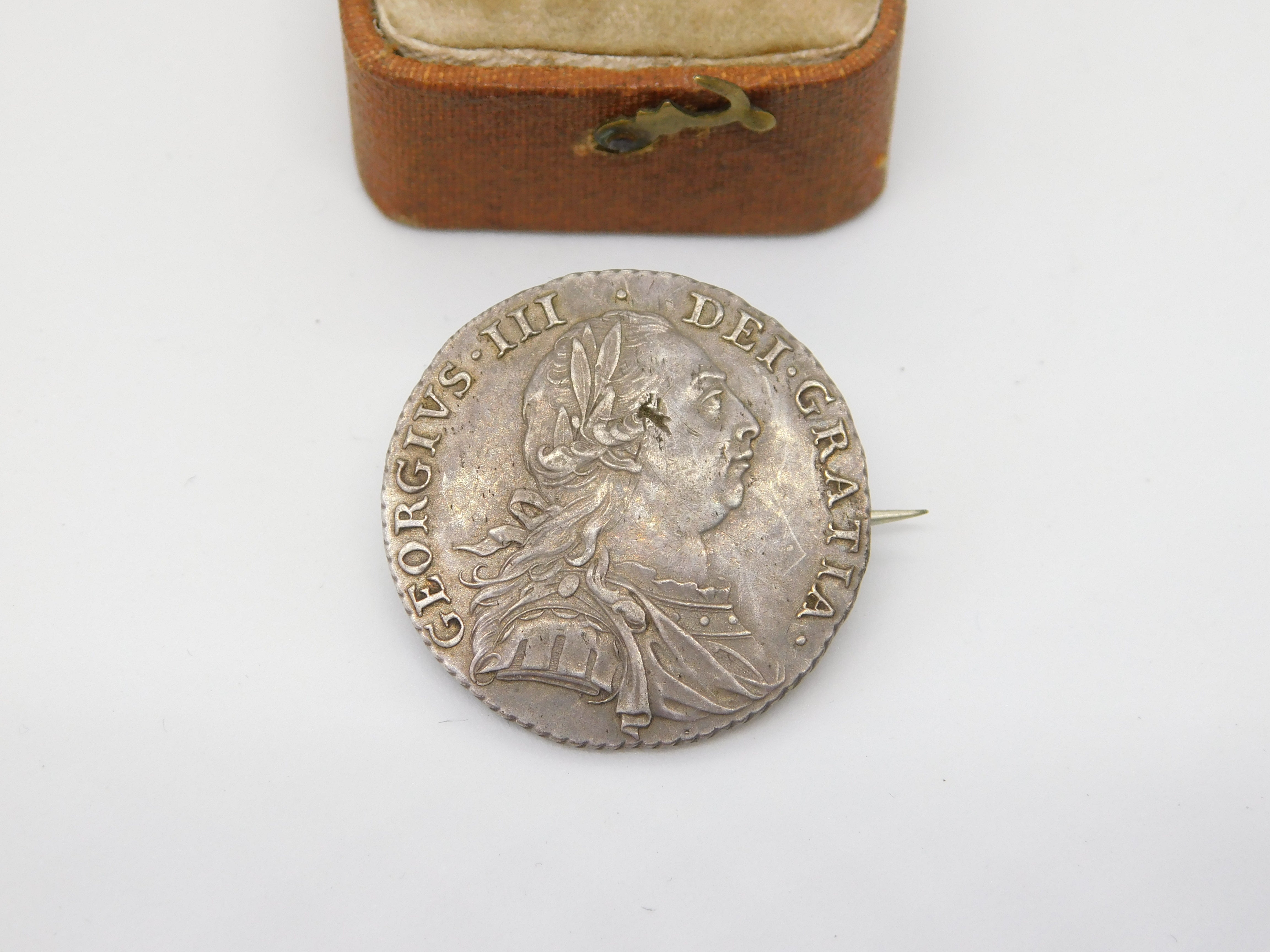 Georgian Sterling Silver Shilling Coin Brooch Very Fine Condition 1787 Antique