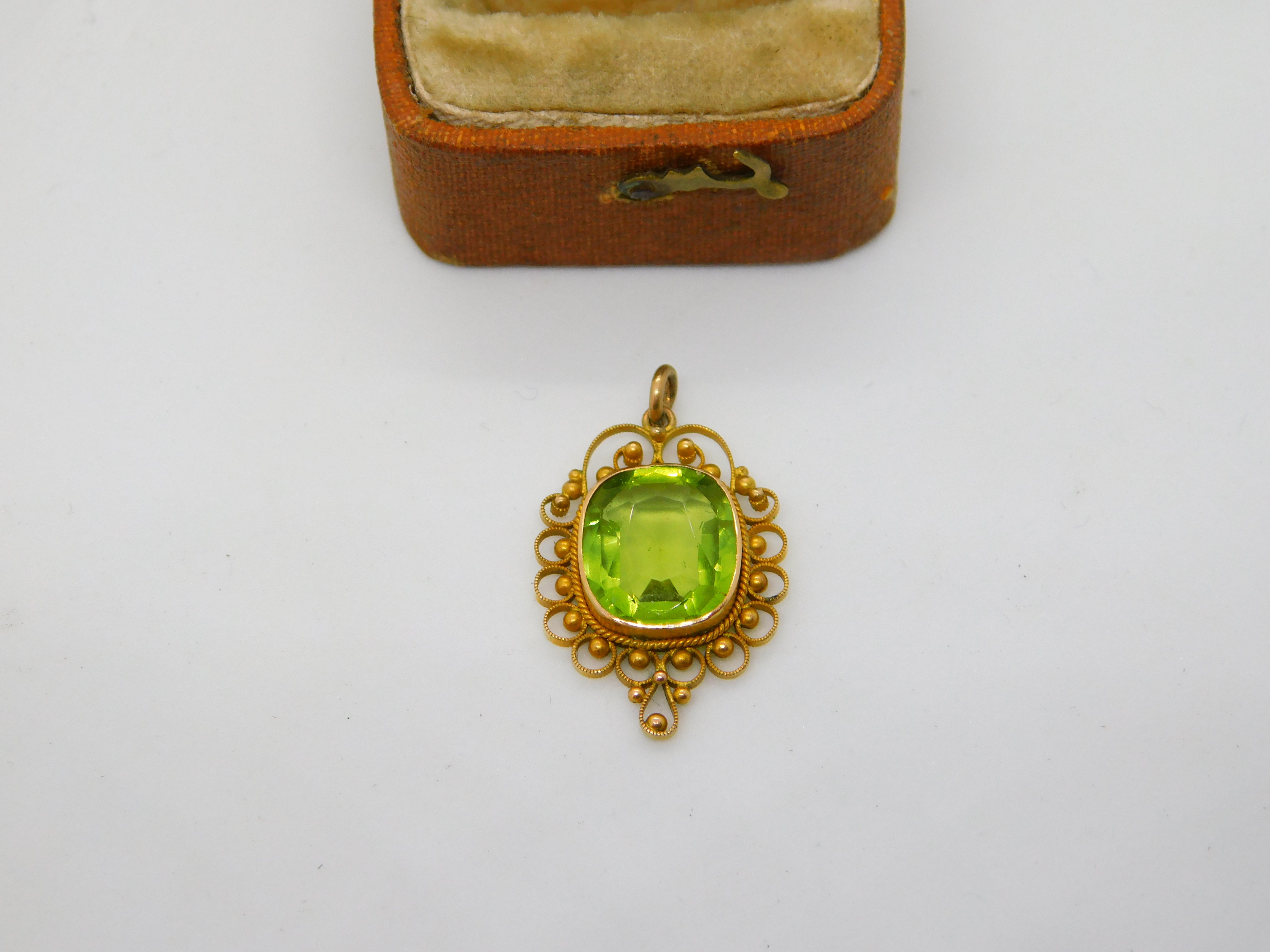 Edwardian 9ct Gold & Peridot Set Drop Pendant Antique c1910 Suffragette