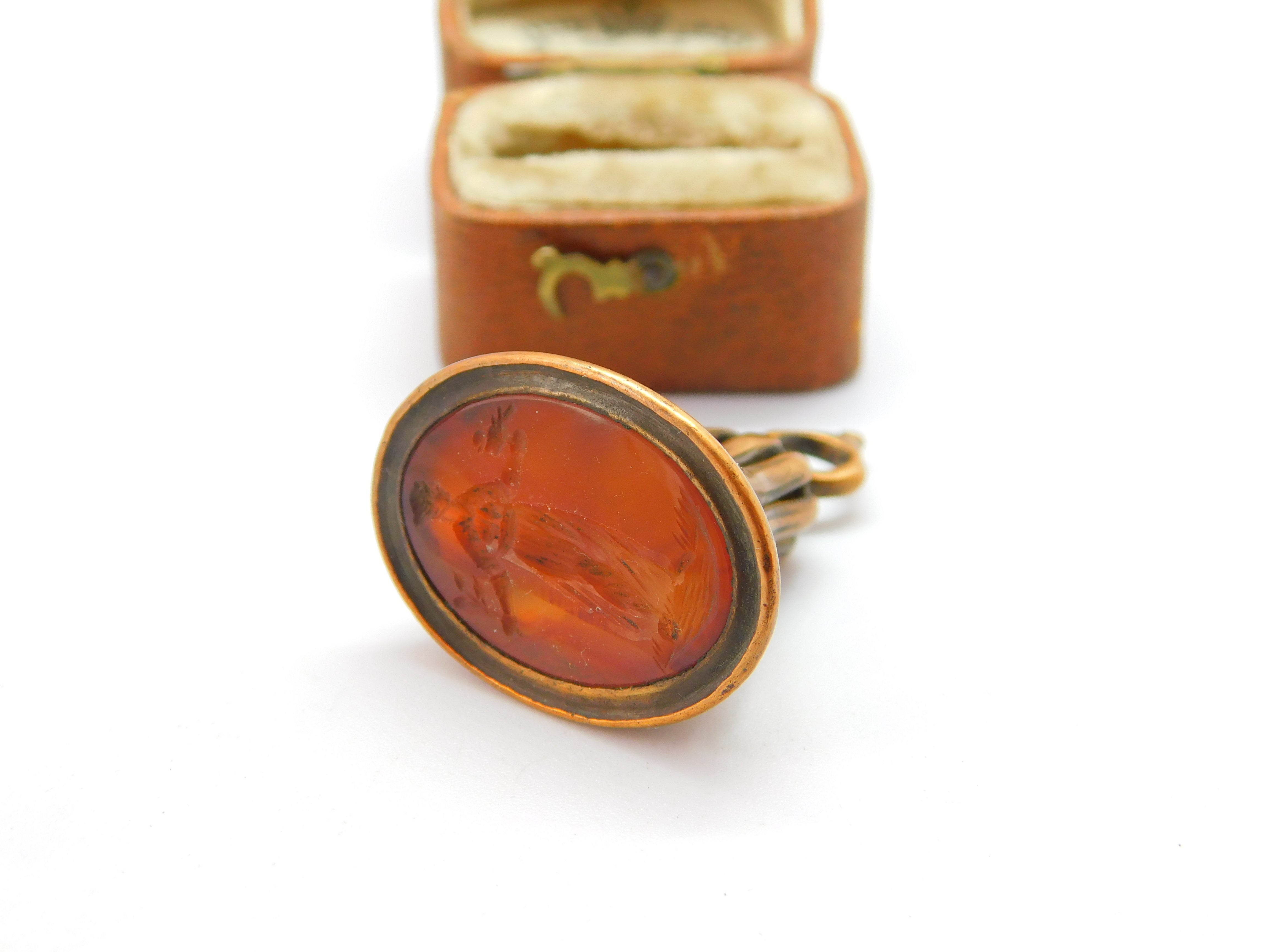 Victorian Rolled Gold Carnelian Agate Flower Intaglio Fob Seal c1840 Antique