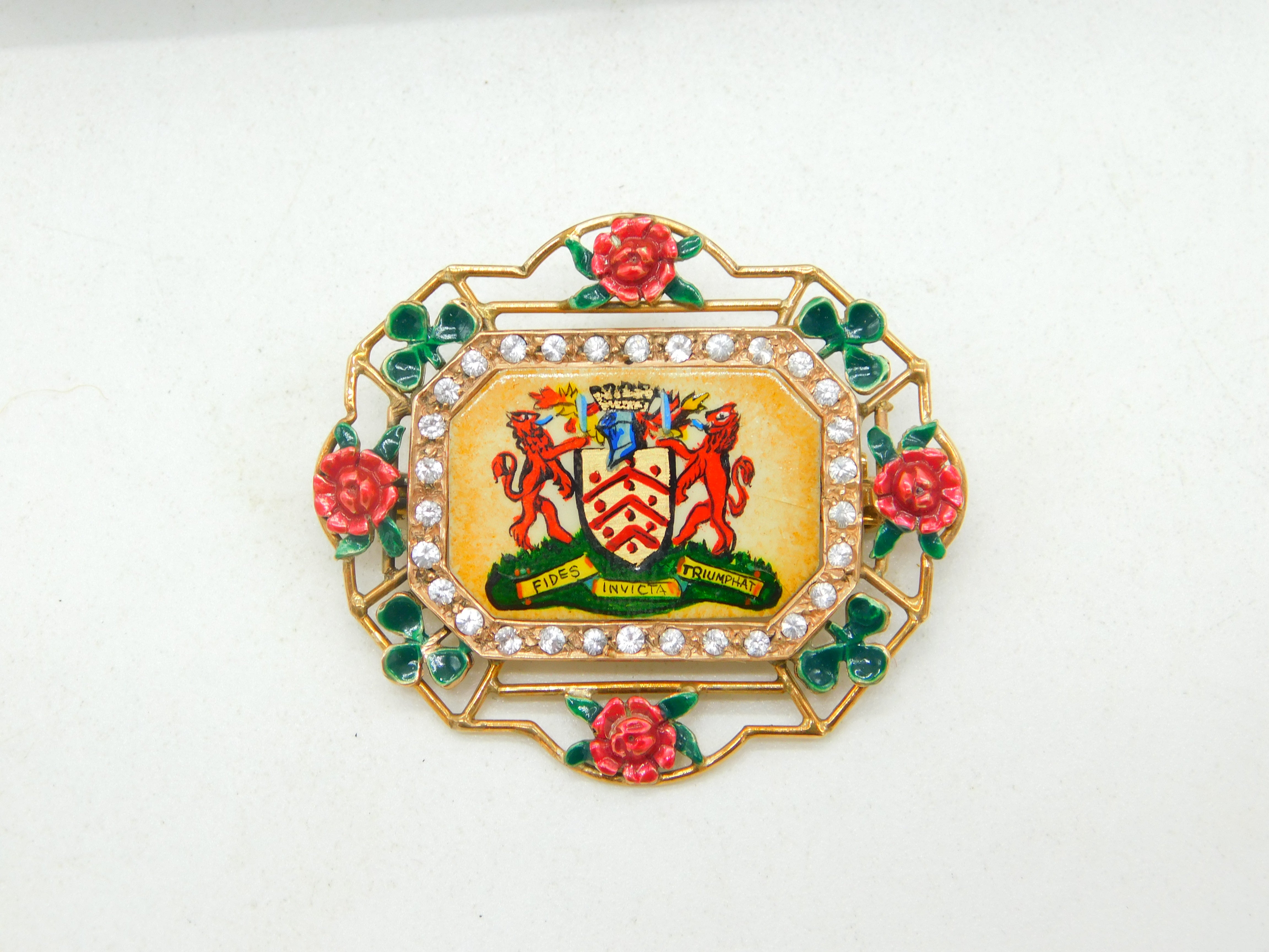 Edwardian Boxed 9ct Gold Enamel & Sapphire Mayoress of Gloucester Brooch Antique