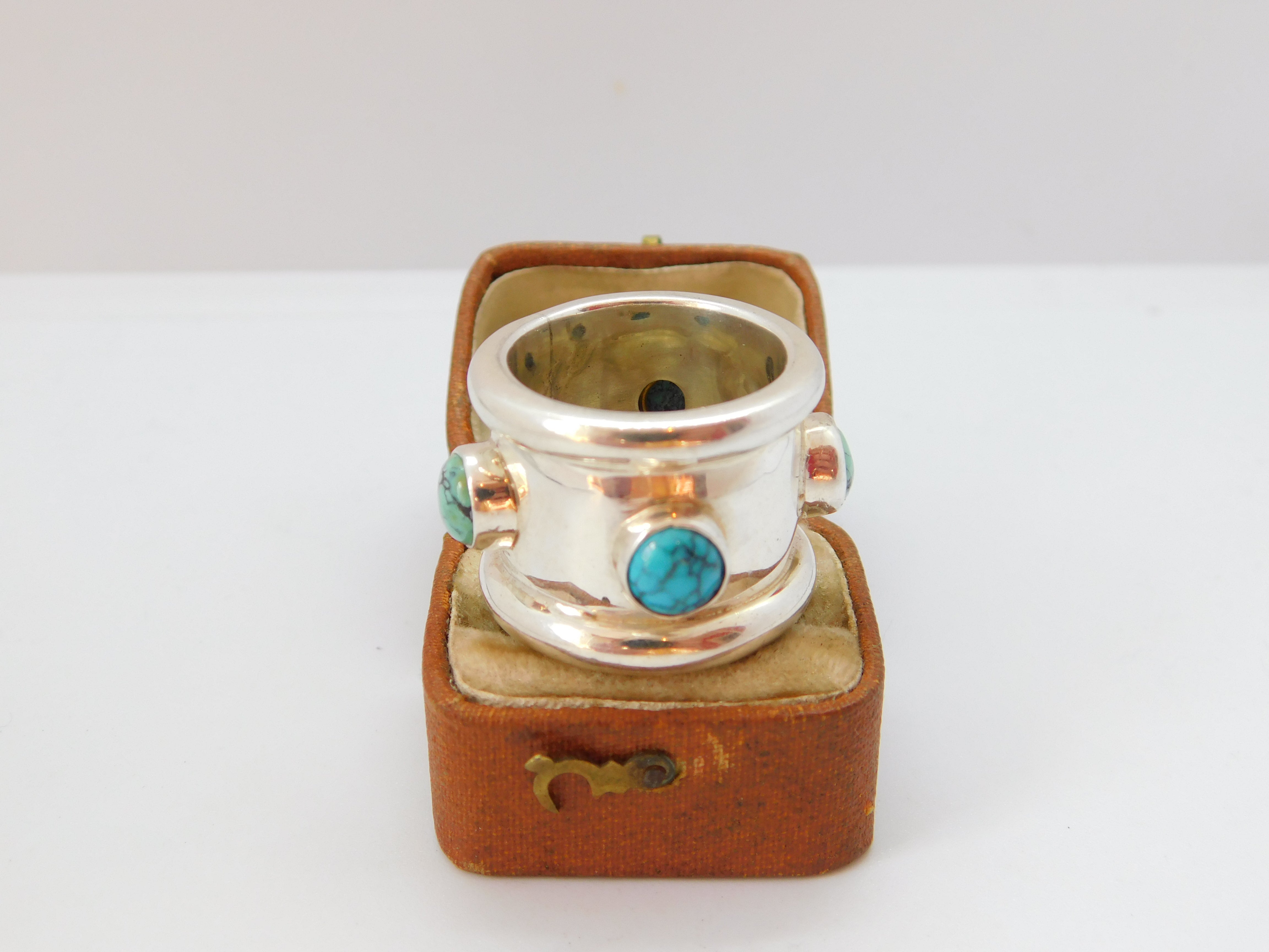 Large Sterling Silver Turquoise Cabochon Turquoise Statement Ring 1995 Vintage