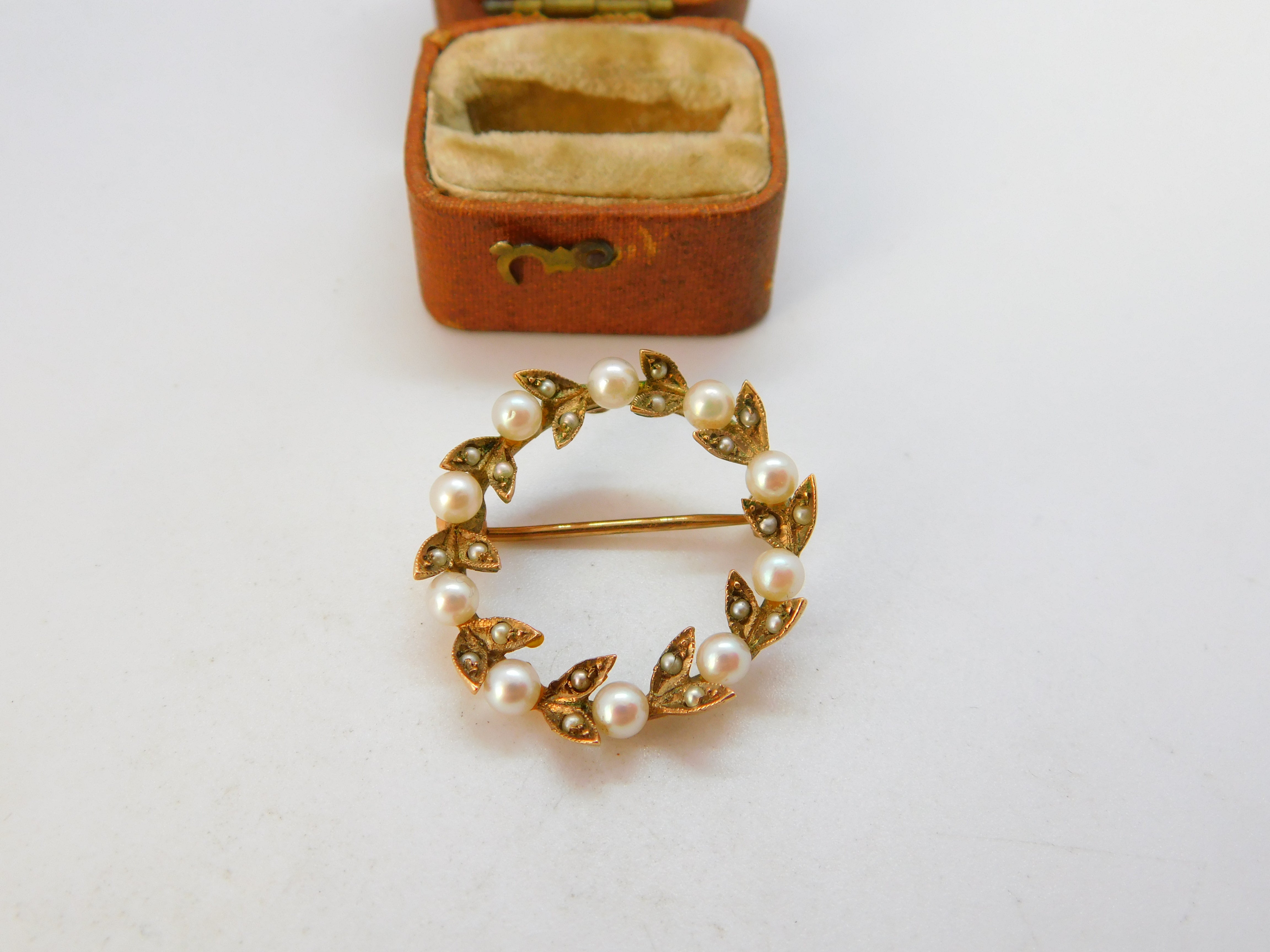 Edwardian 9ct Gold Seed Pearl Set Wreath Brooch c1910 Antique