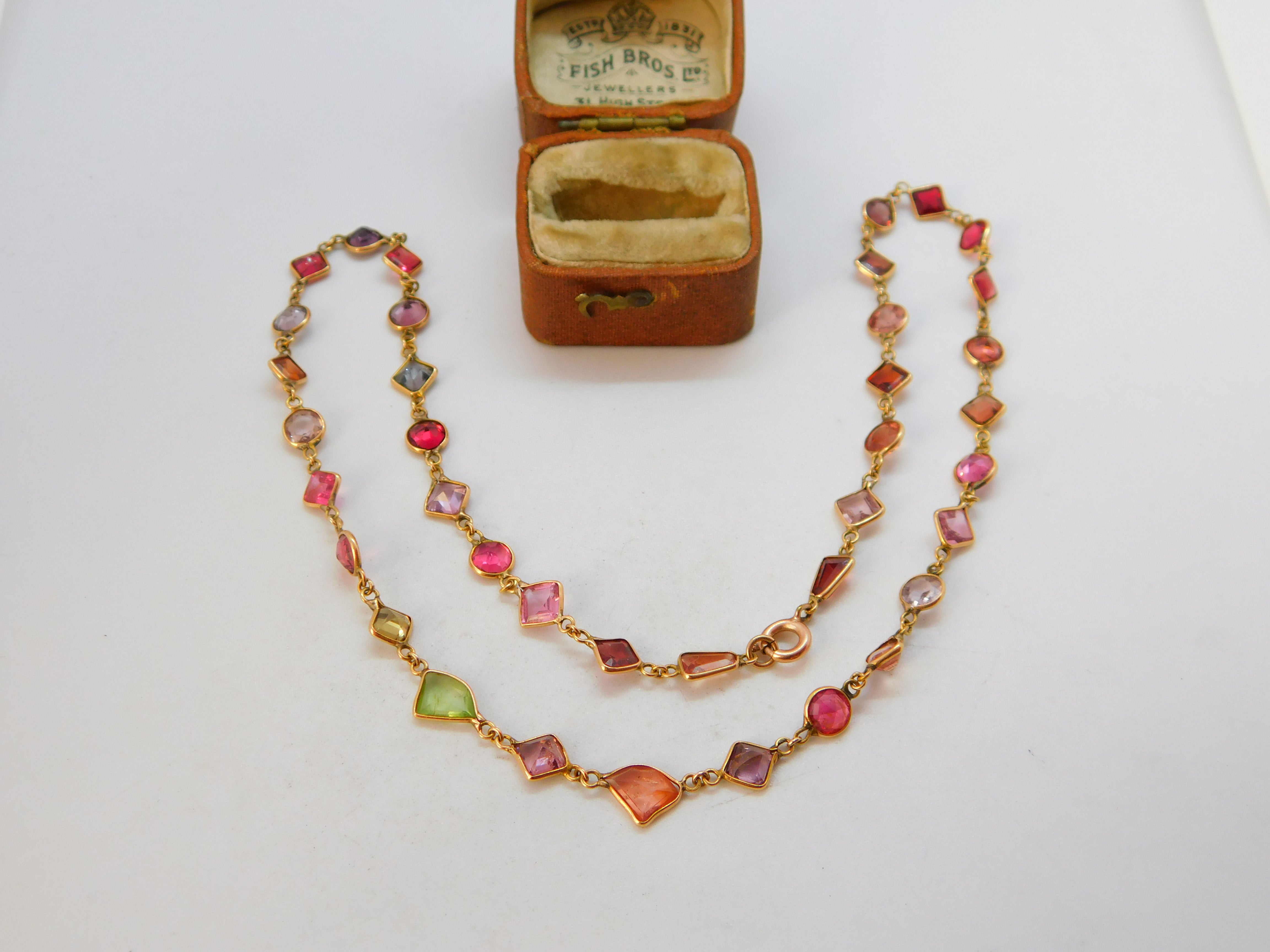 9ct Gold Modernist Multi Gemstone Set Necklace Vintage c1980 15.8" 40cm