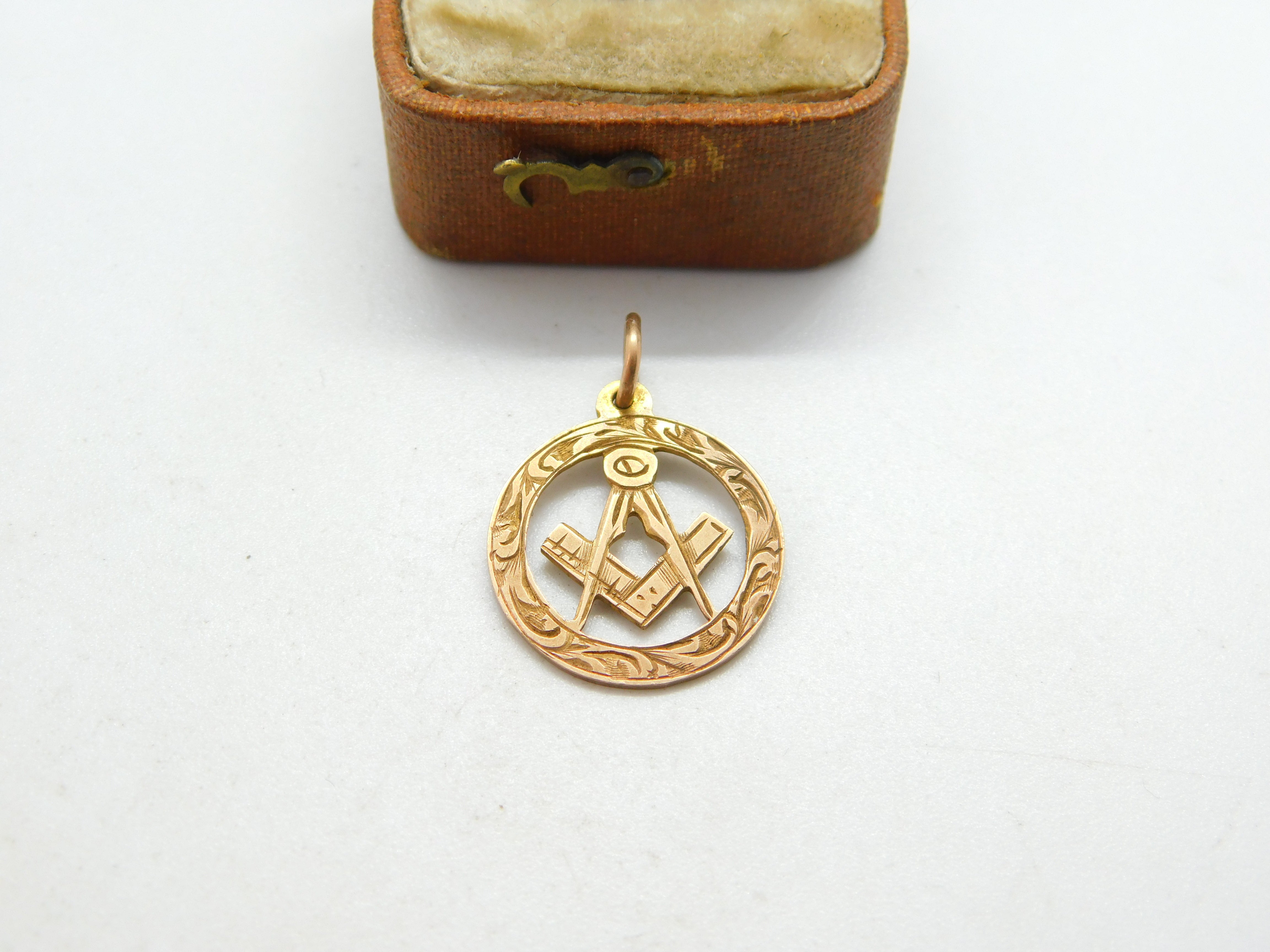 Edwardian 9ct Yellow Gold Masonic Freemasons Compass Pendant c1910 Antique