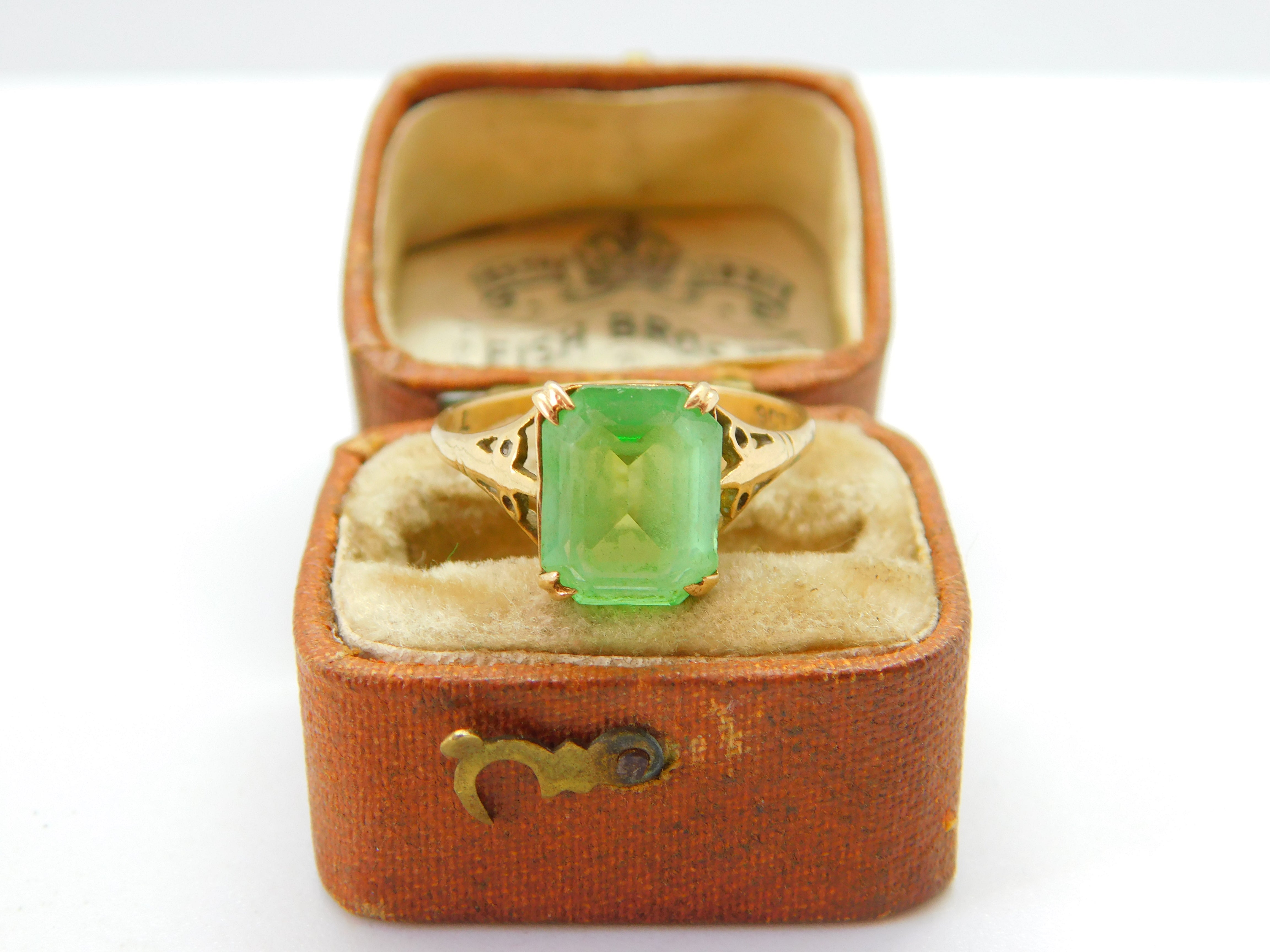 Edwardian 9ct Yellow Gold & Green Peridot Paste Set Dress Ring c1910 Antique