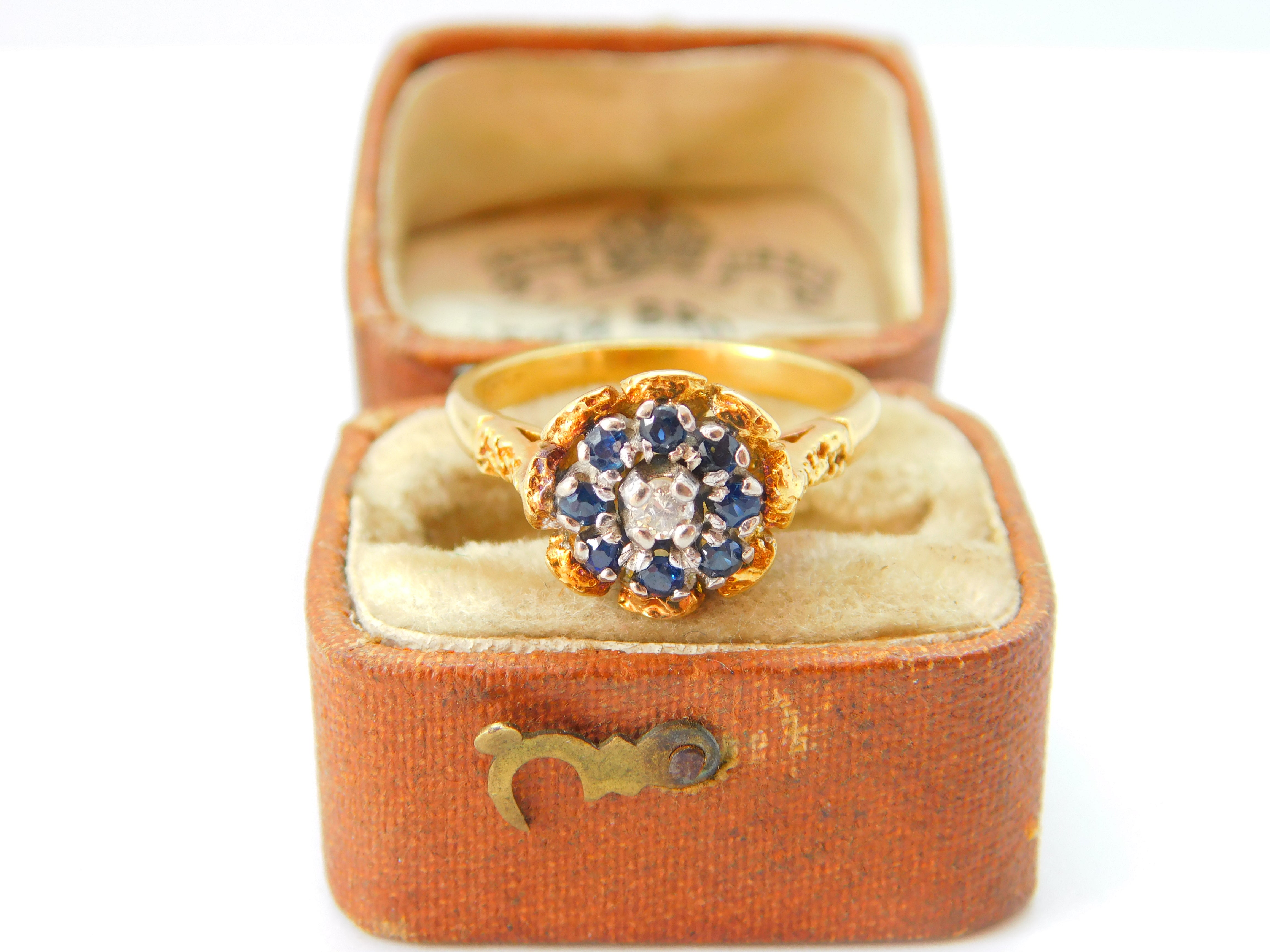 18ct Yellow Gold, Sapphire & Diamond Floral Dress Ring Antique c1920 Art Deco