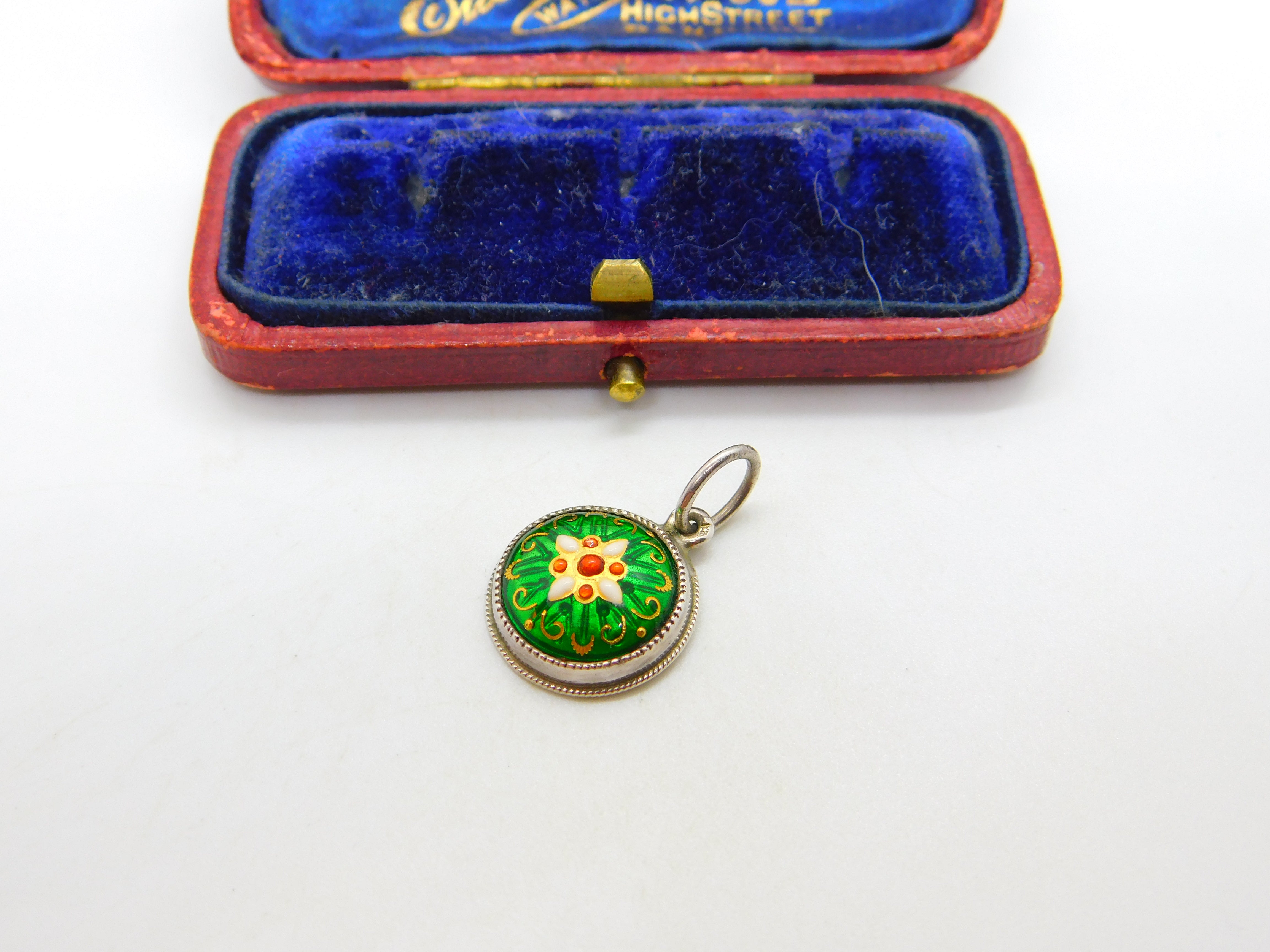 Floral Enamel on Sterling Silver Pendant Antique Victorian c1890