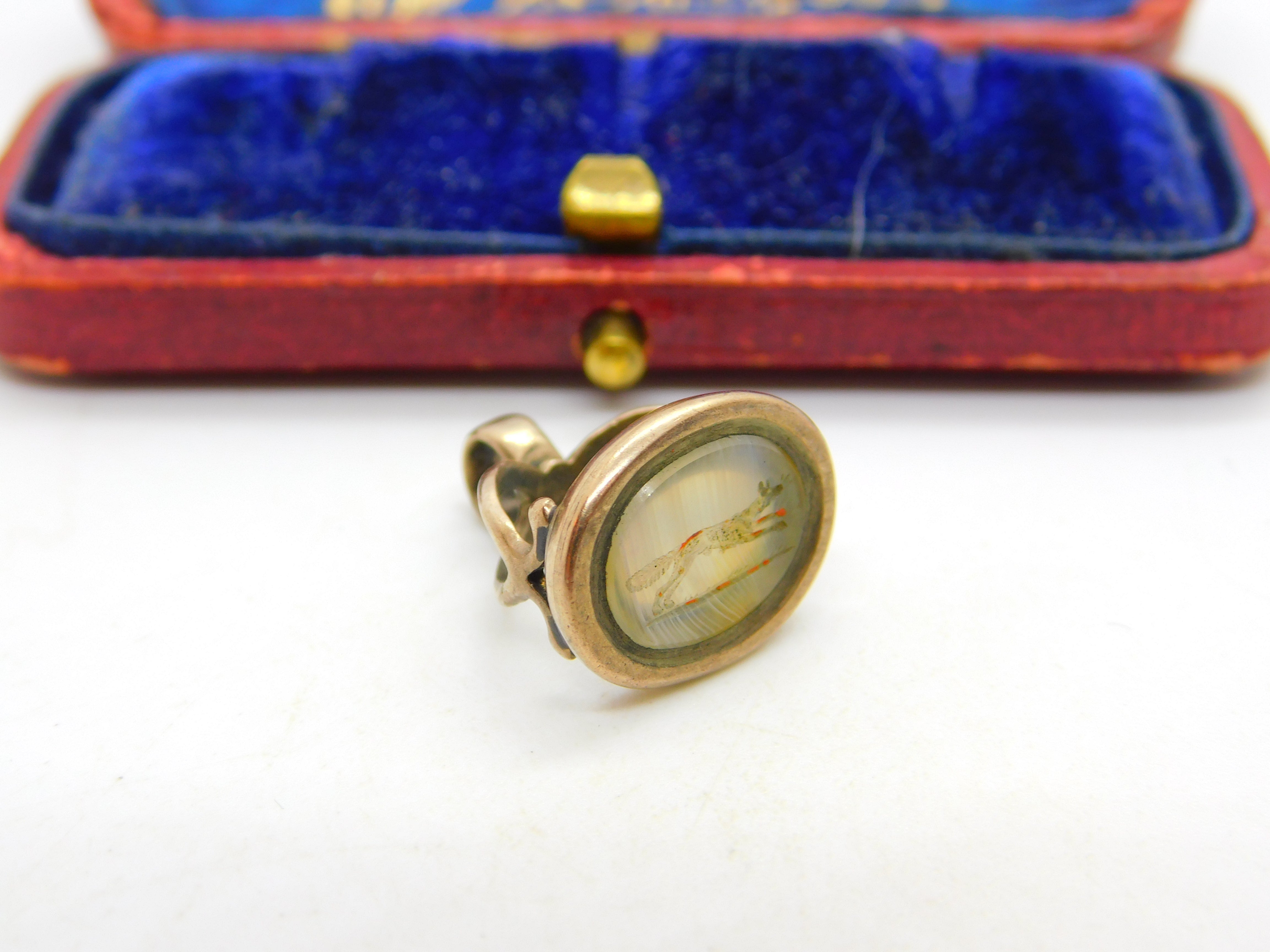 Running Fox Intaglio Seal 9ct Gold Cased Fob Pendant Antique Georgian c182