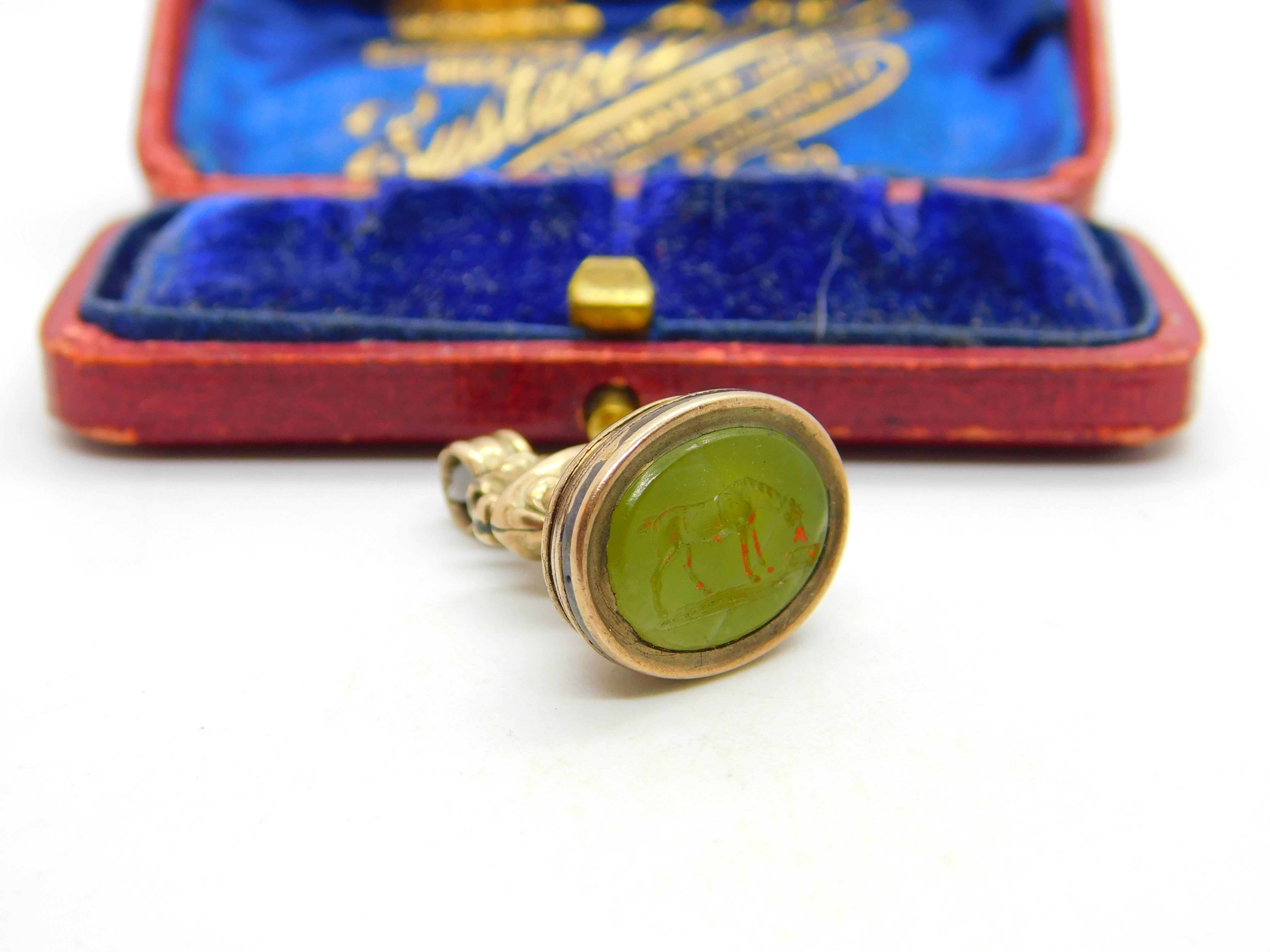 Horse Intaglio Agate Seal 9ct Gold Cased Fob Pendant Antique Georgian c1820