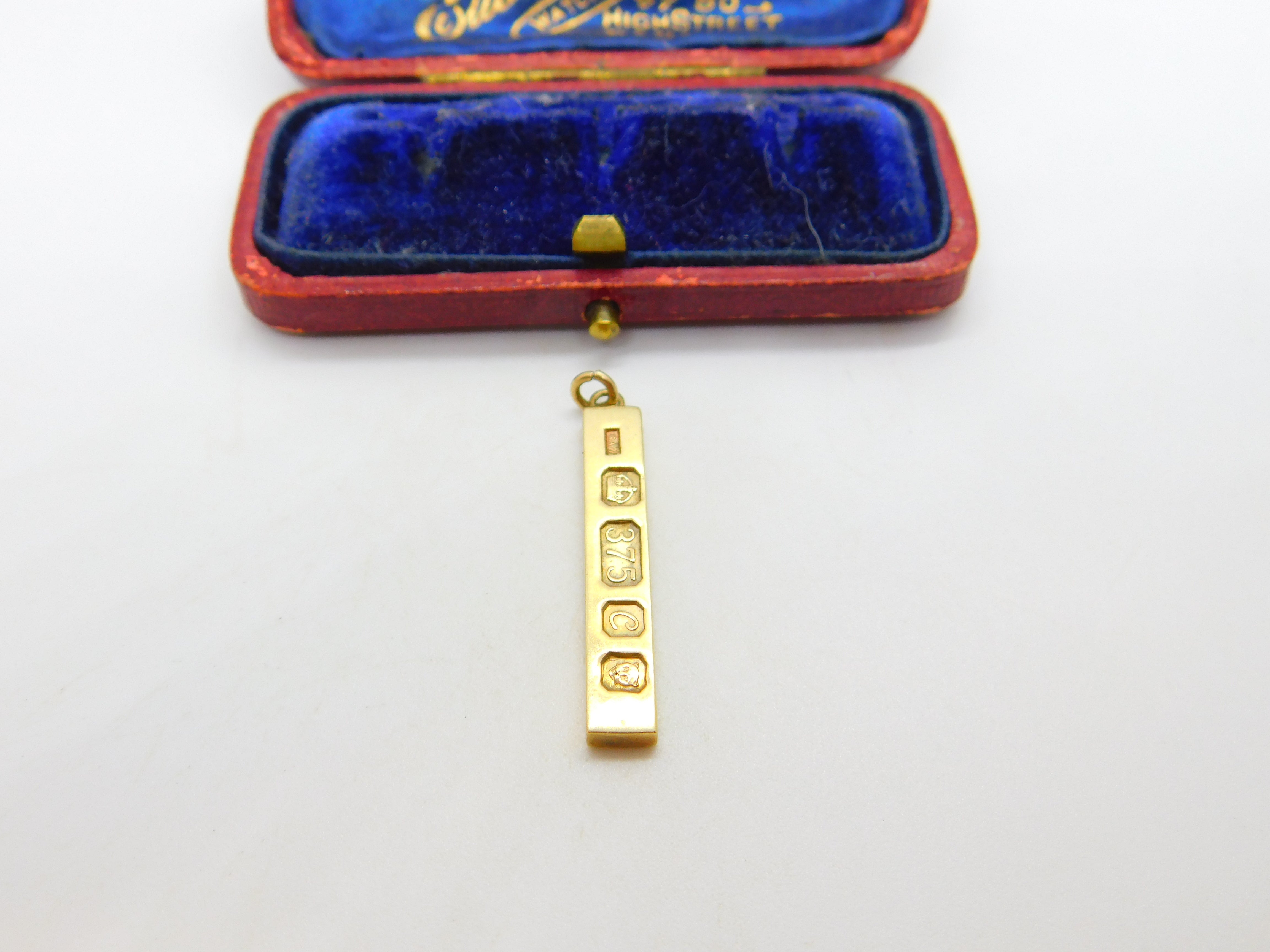 English 9ct Yellow Gold 1977 Bullion Bar Pendant or Charm Vintage London