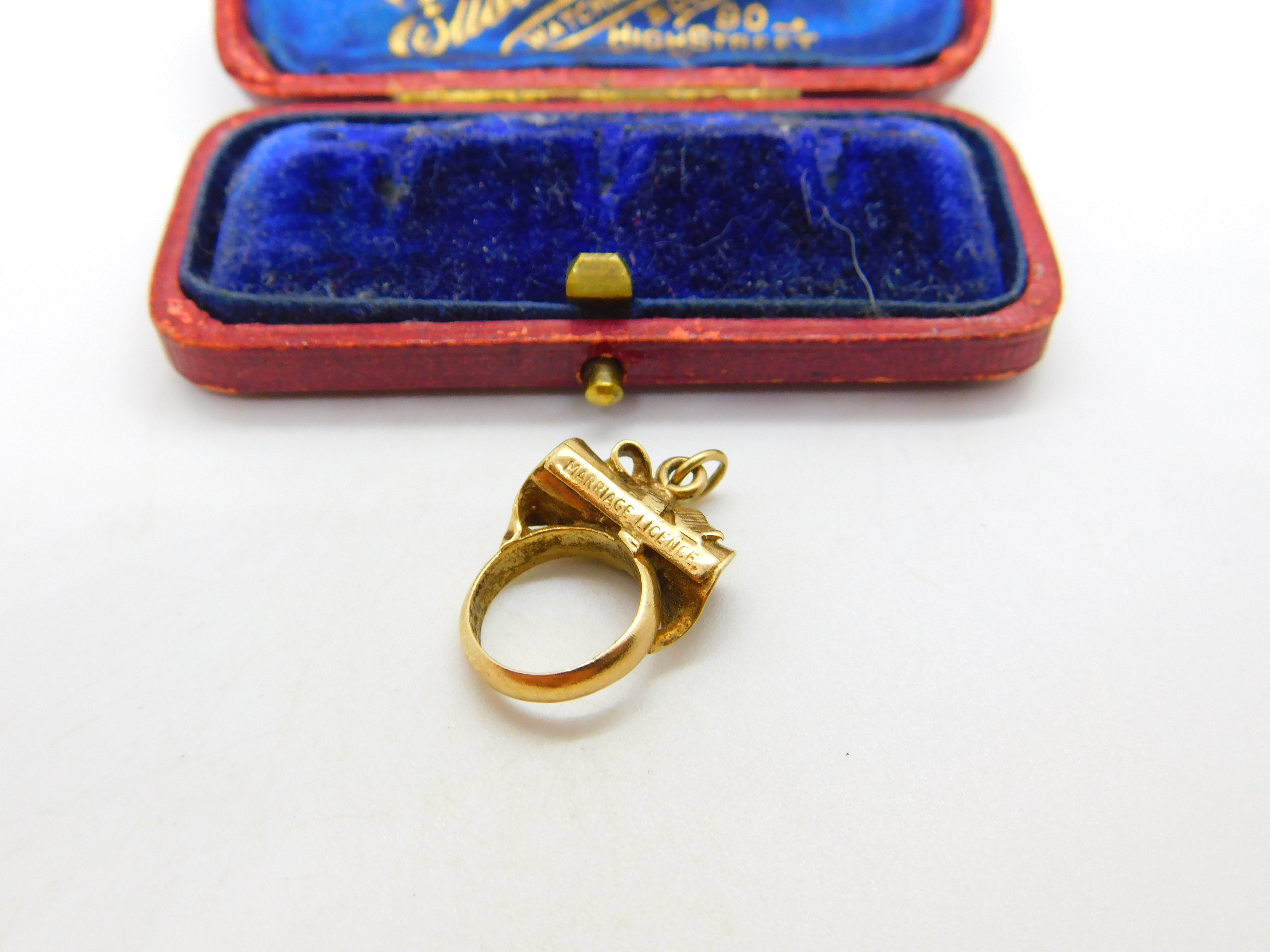 Marriage Licence 9ct Yellow Gold Charm or Pendant with Stanhope Vintage 1965