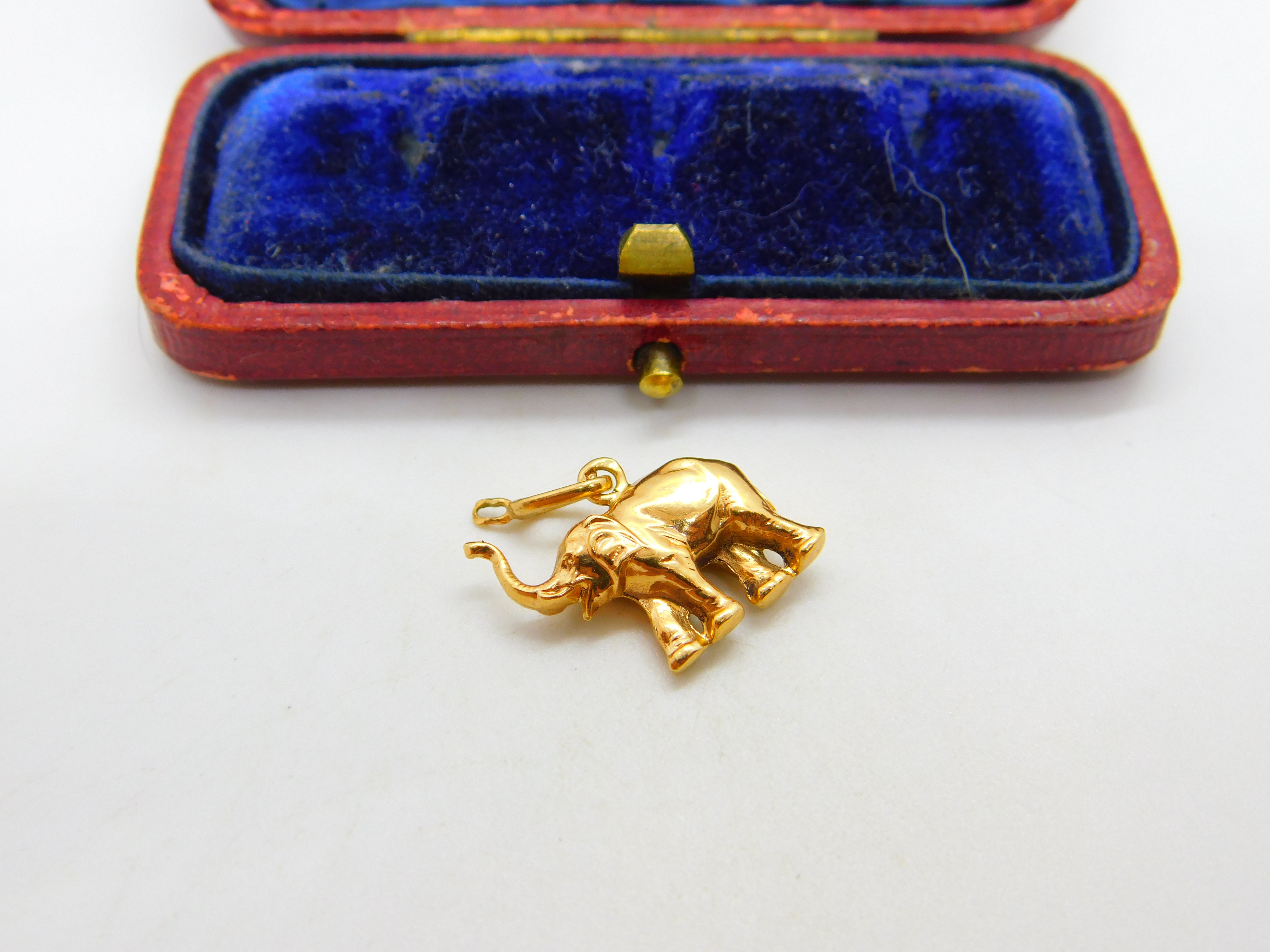 Lucky Elephant Trunk Up 18ct Yellow Gold Charm or Pendant Vintage c1980