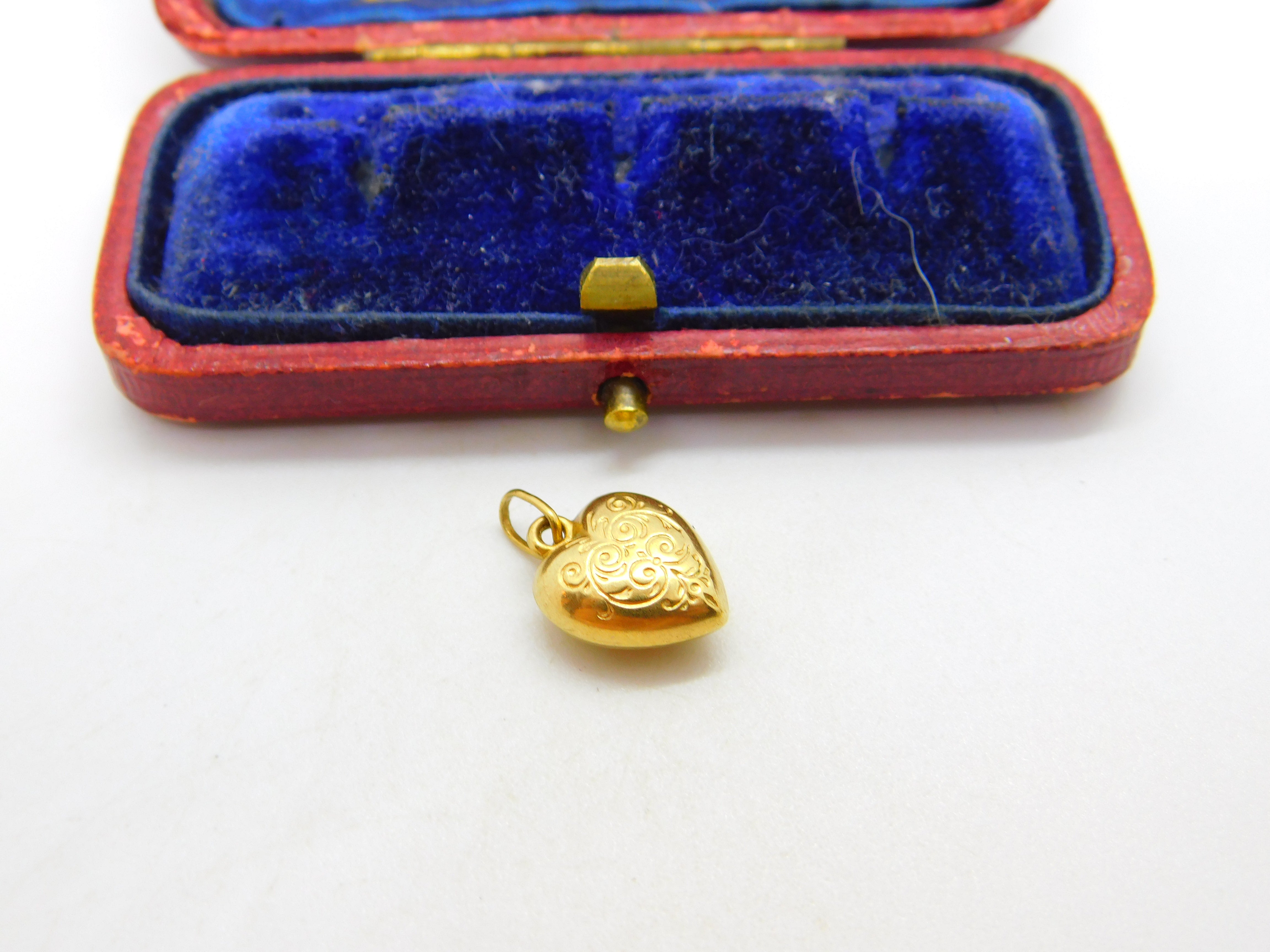 Engraved Puffy Heart 9ct Yellow Gold Charm or Pendant Vintage c1970