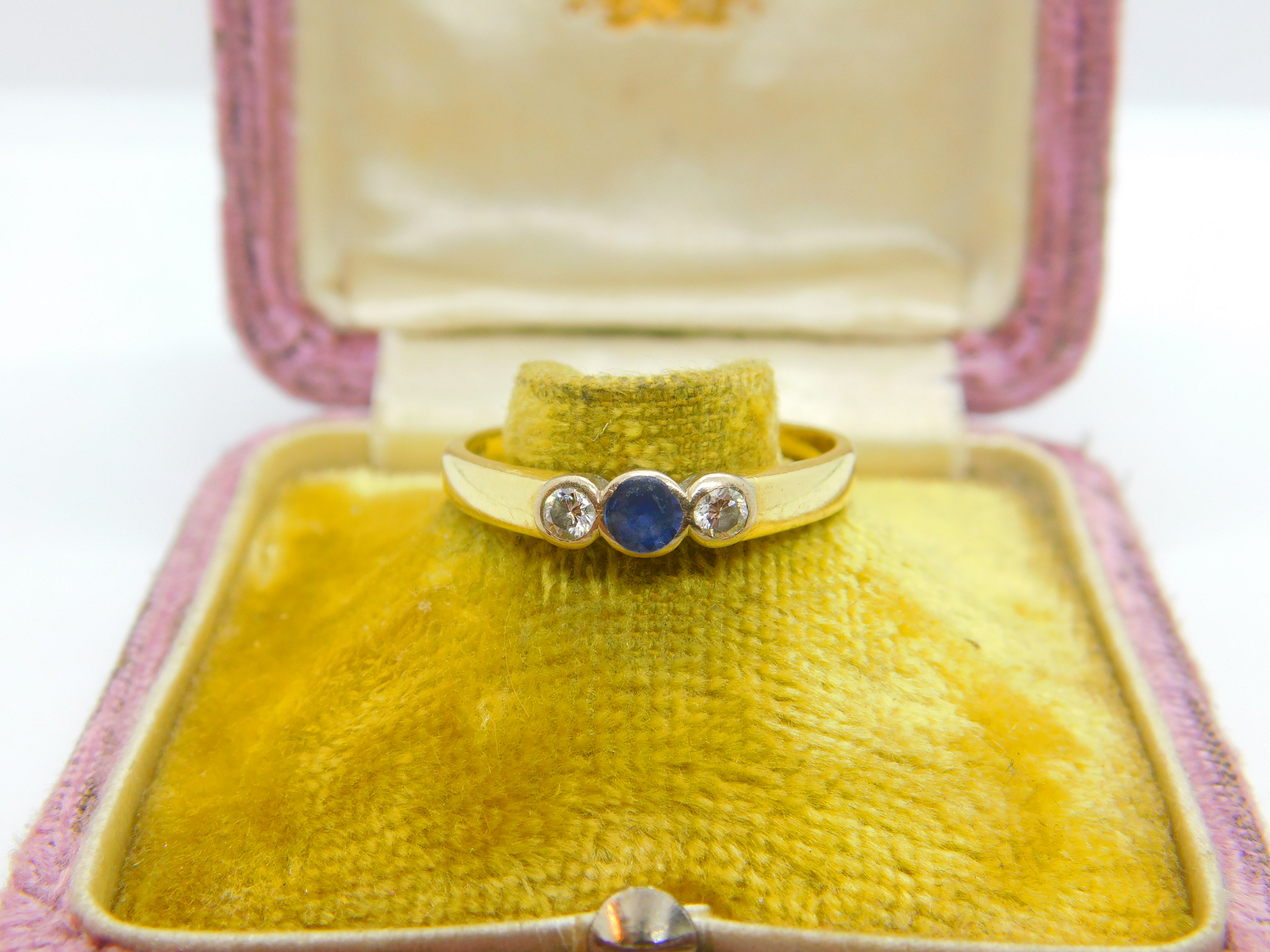18ct Yellow Gold, Sapphire & Diamond Set Band Ring 2000 Sheffield Vintage