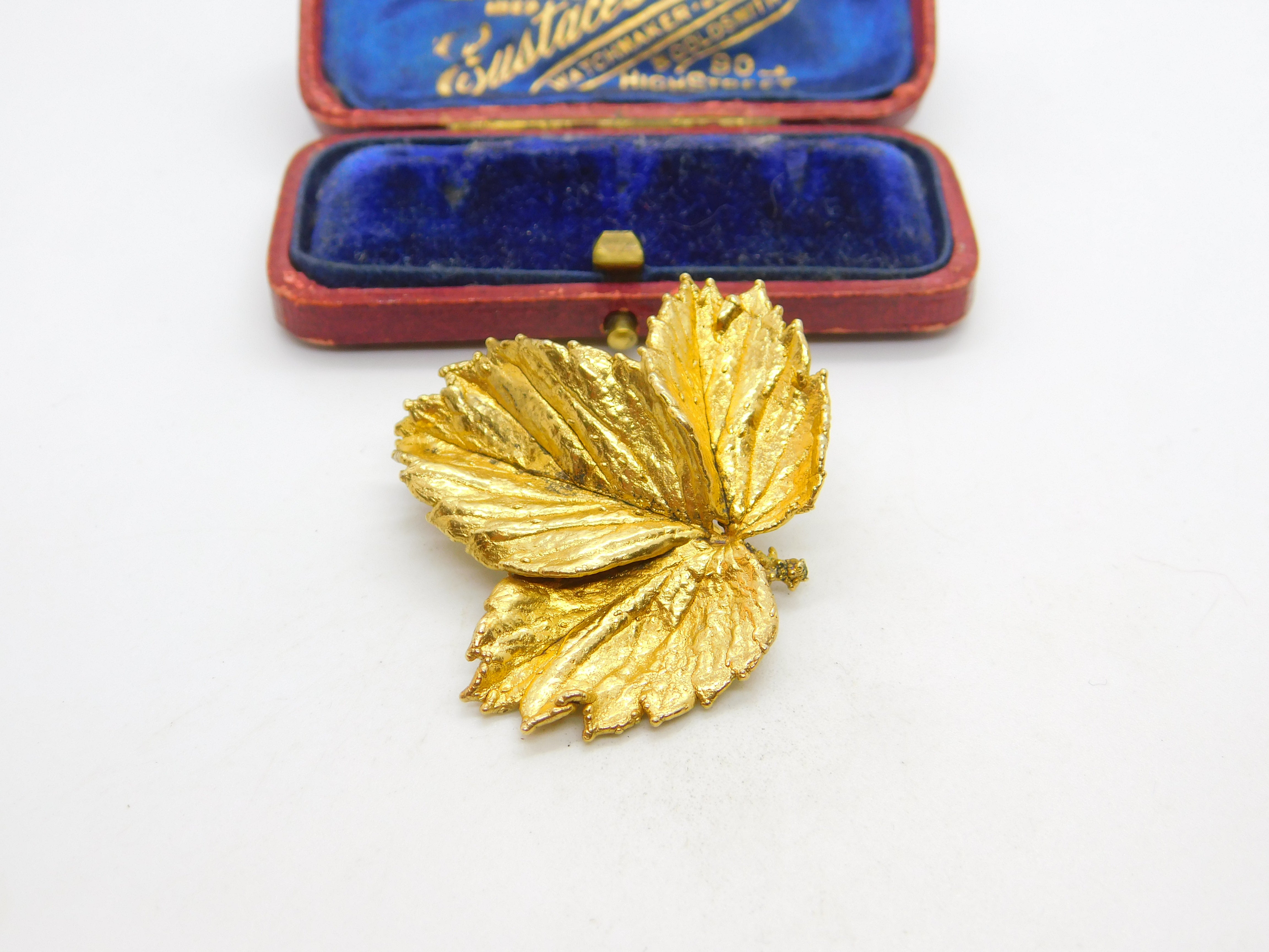 Danish Gold on Sterling Silver Leaf Form Brooch by Flora Danica c1950 Vintage