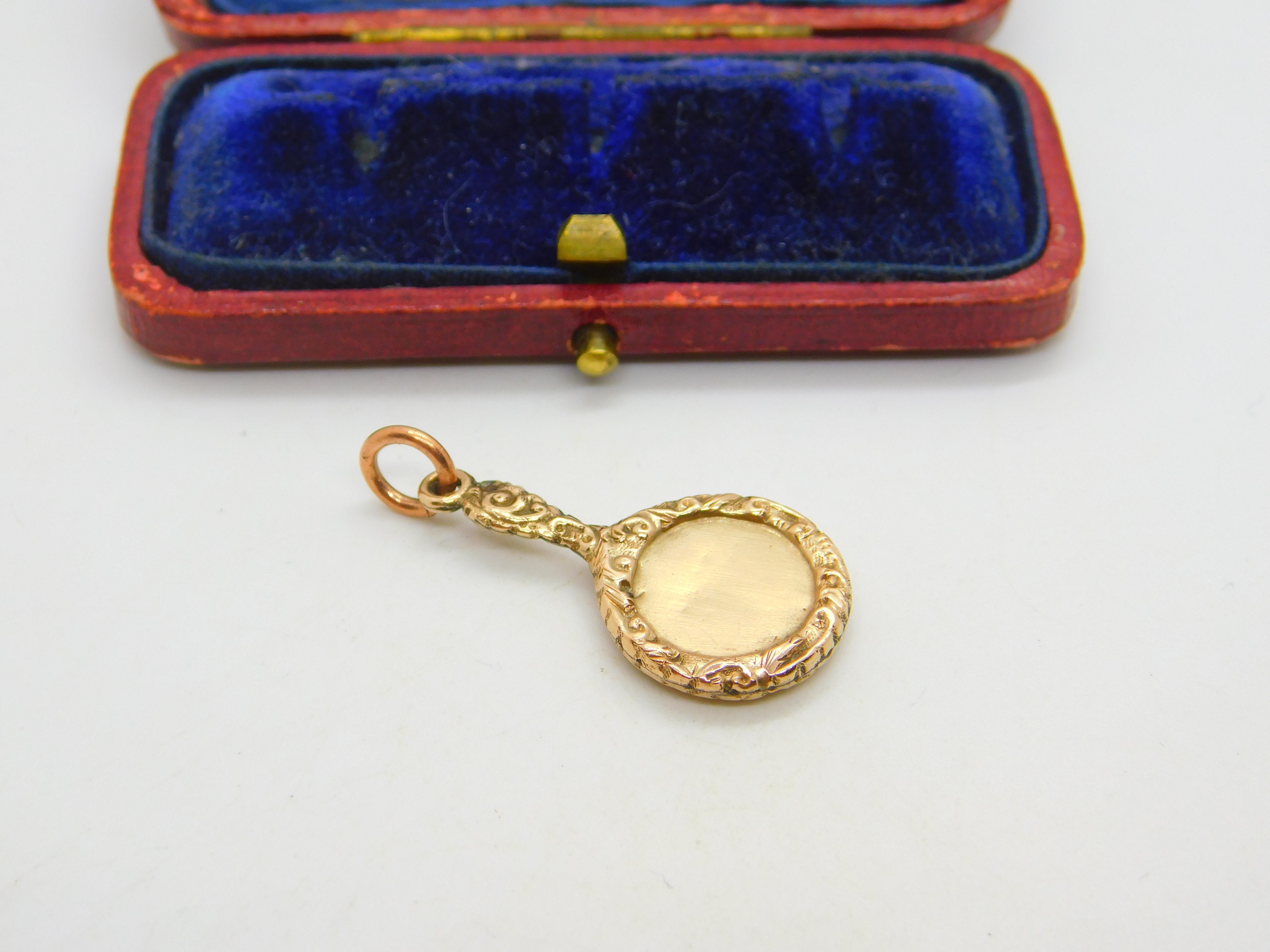 9ct Rose Gold Floral Pattern Hand Mirror Charm Pendant Vintage c1960