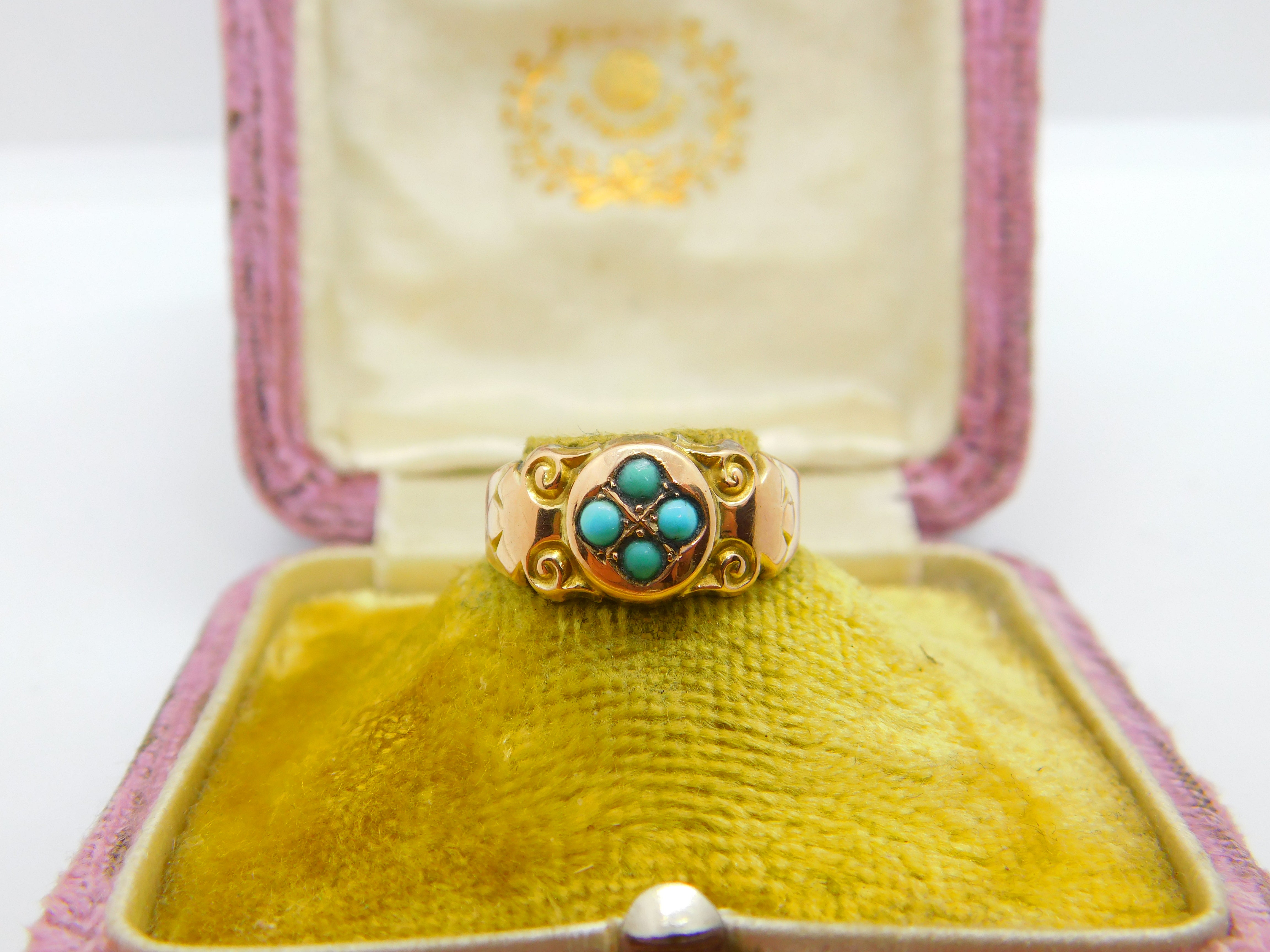 Edwardian 9ct Yellow Gold Turquoise Set Sweetheart Ring 1906 Chester Antique