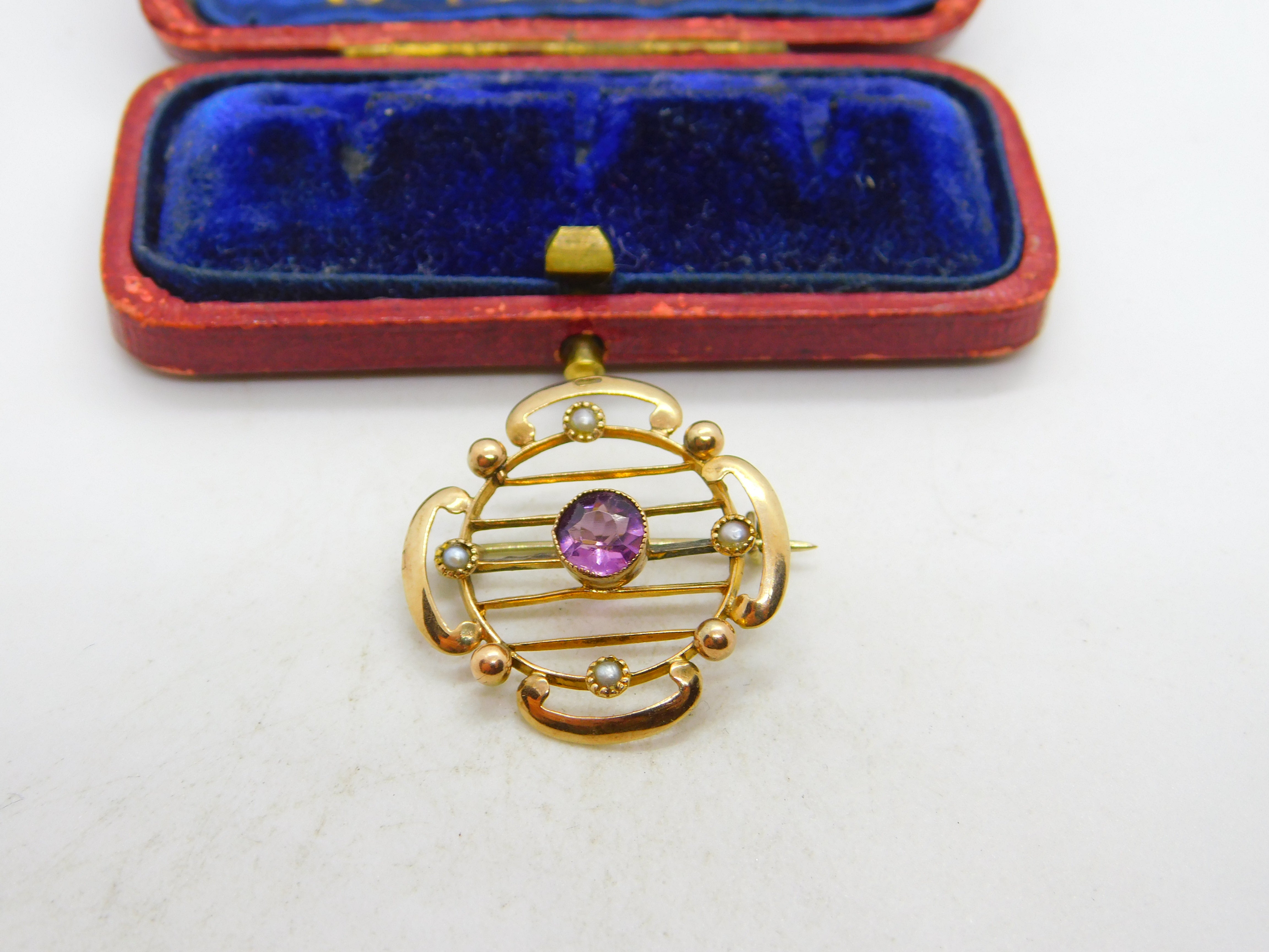 Edwardian 9ct Gold, Seed Pearl & Central Topaz Sweetheart Brooch c1910 Antique