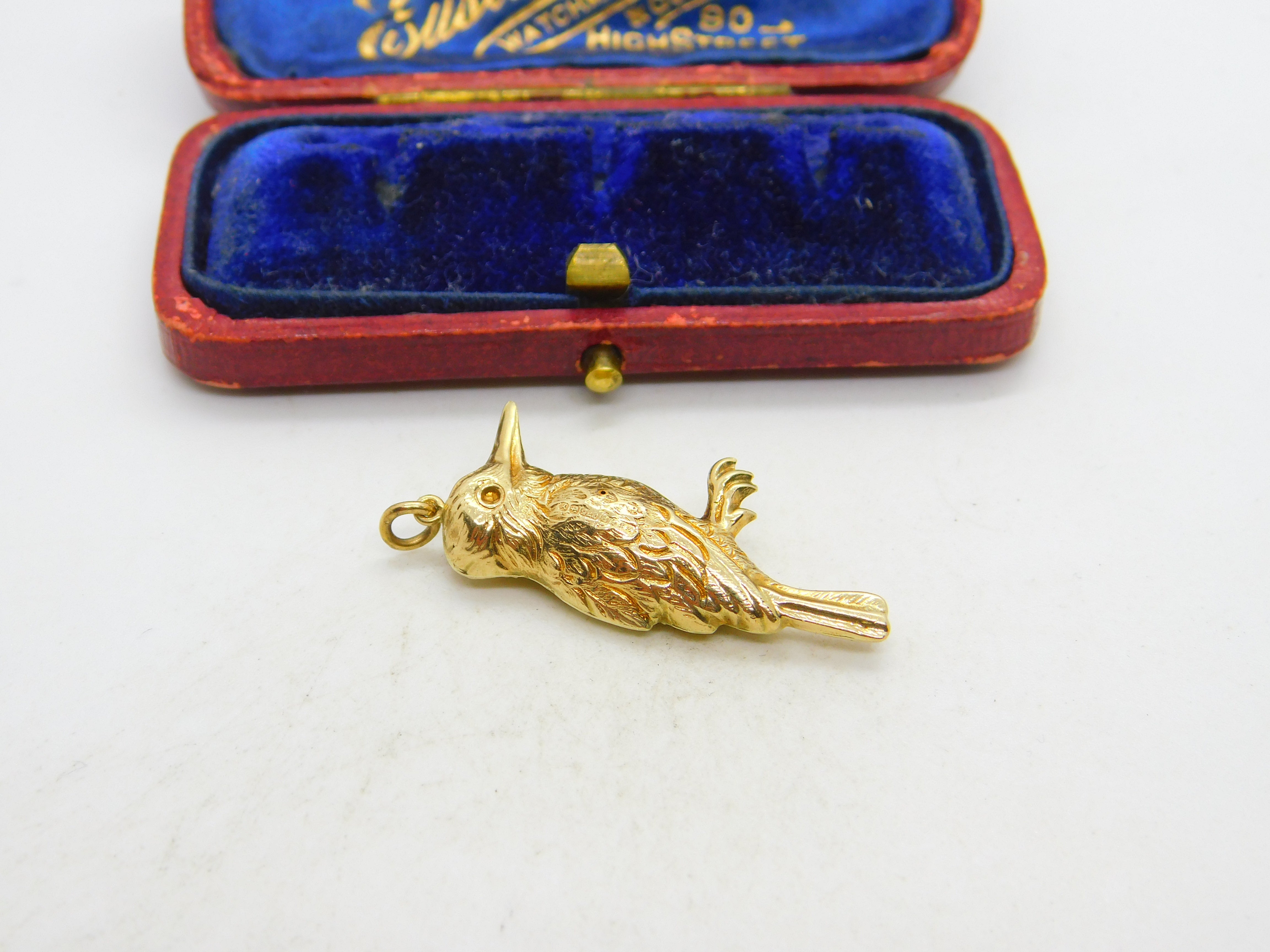 Large 9ct Yellow Gold Woodpecker Bird Charm or Pendant 1973 Birmingham