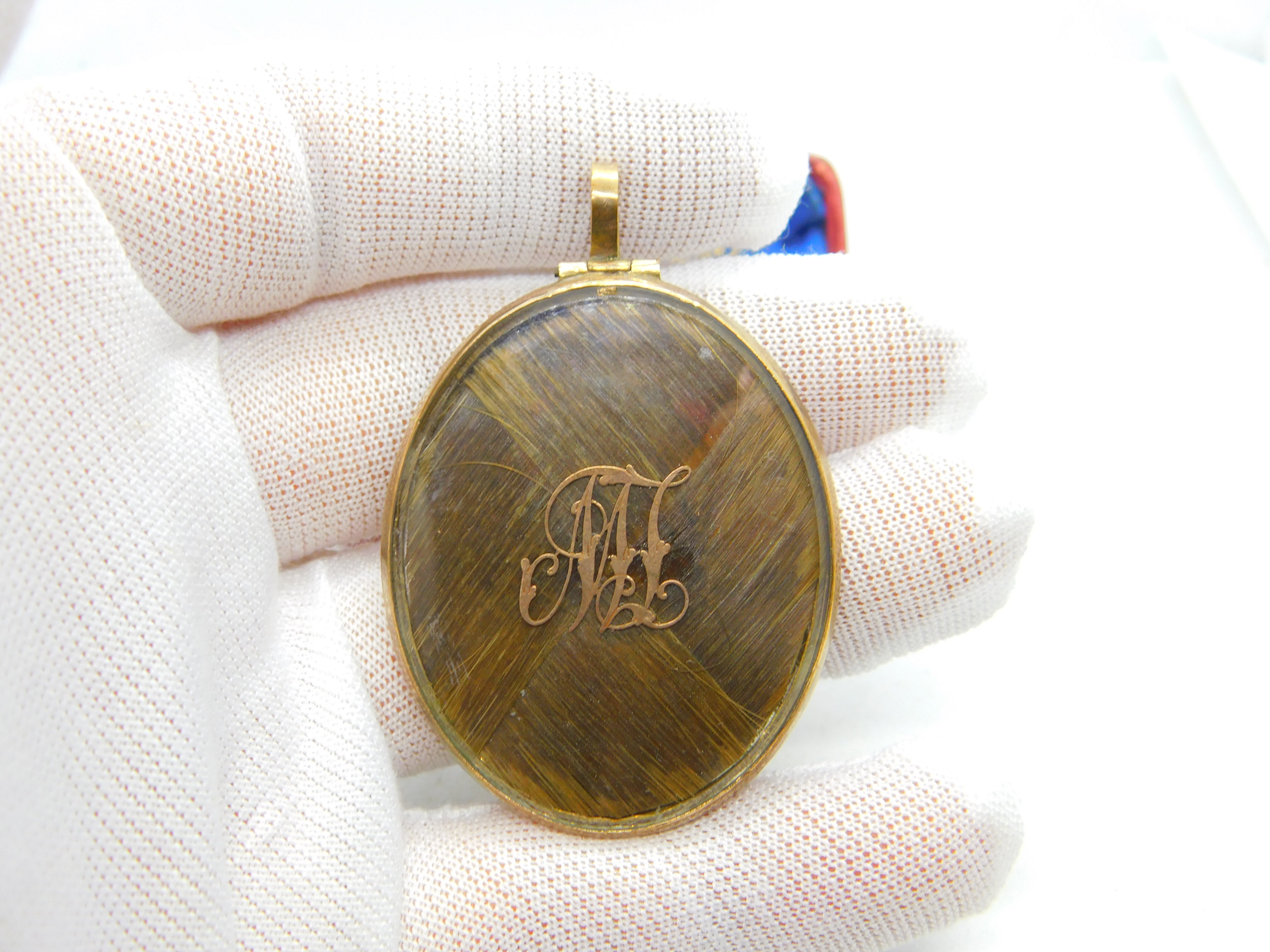 Large Victorian 9ct Gold Woven Hair Set Monogram Mourning Locket c1860 Antique