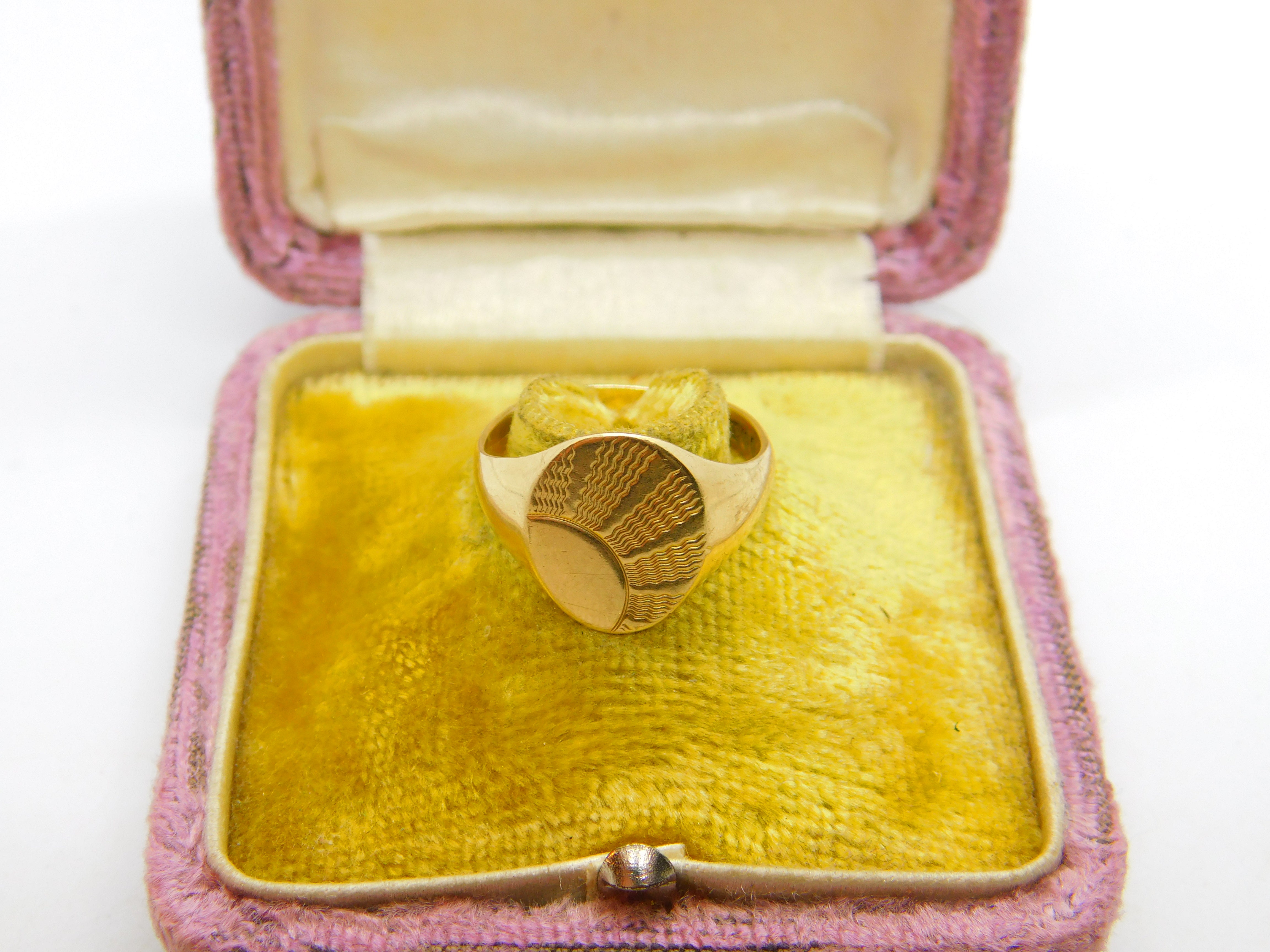 9ct Yellow Gold Essential Rising Sun Pattern Signet Ring Vintage 1966 London