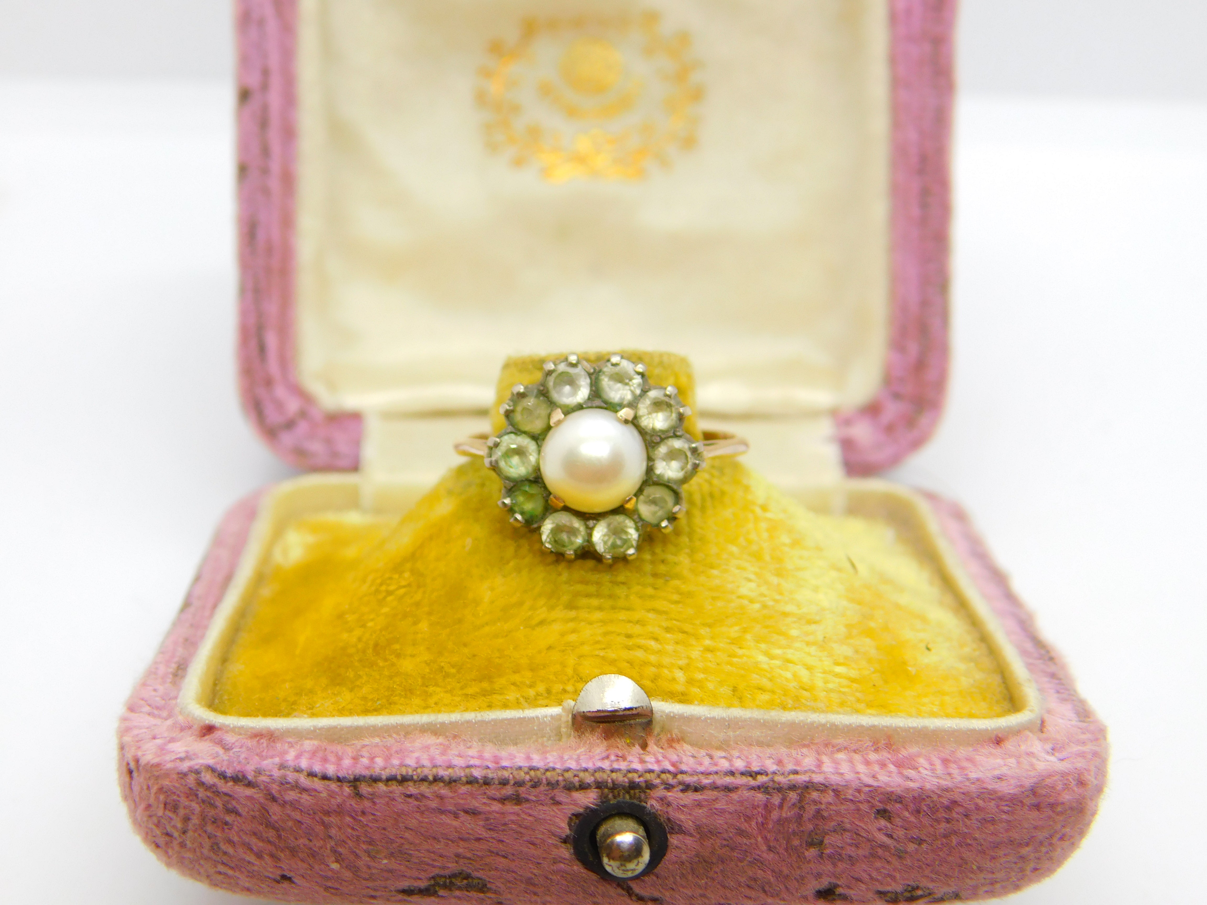 Art Deco 9ct Rose Gold, Pearl & Paste Set Floral Cluster Ring c1920 Antique
