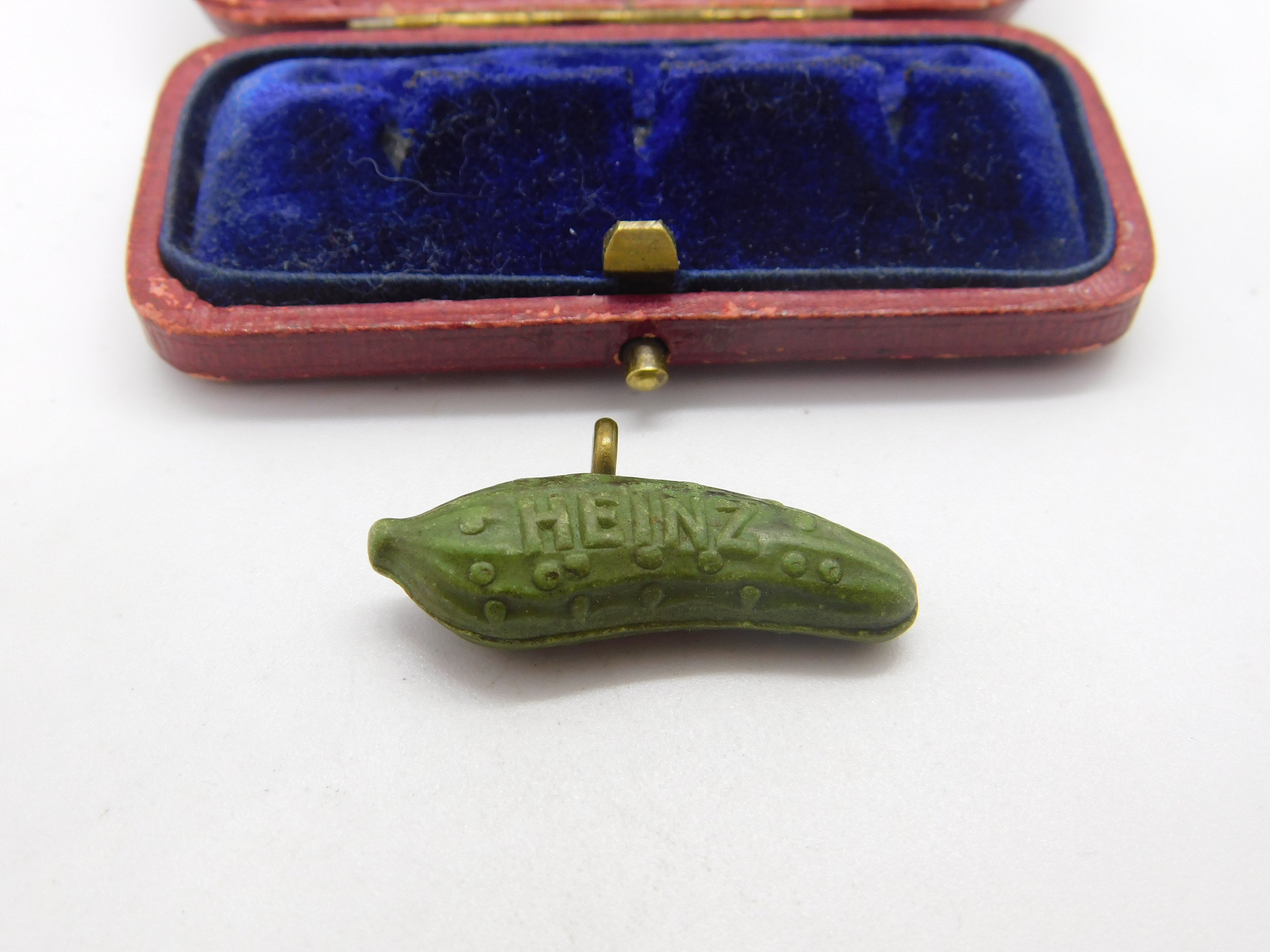Gilt Metal & Enamel Heinz Pickle or Gherkin Advertising Charm Vintage c1970