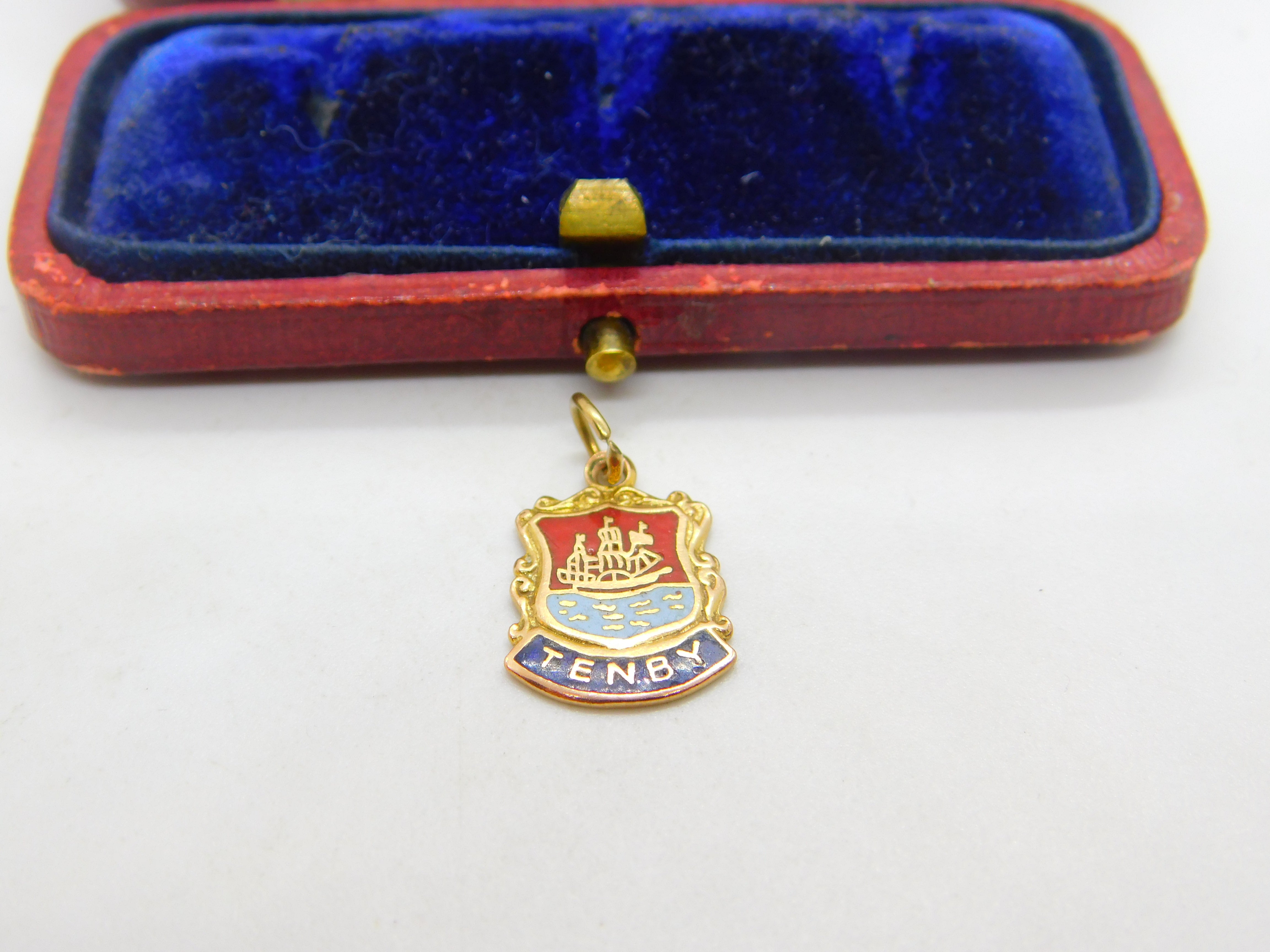 9ct Yellow Gold & Enamel Tenby Wales Souvenir Charm 1958 Mid-Century