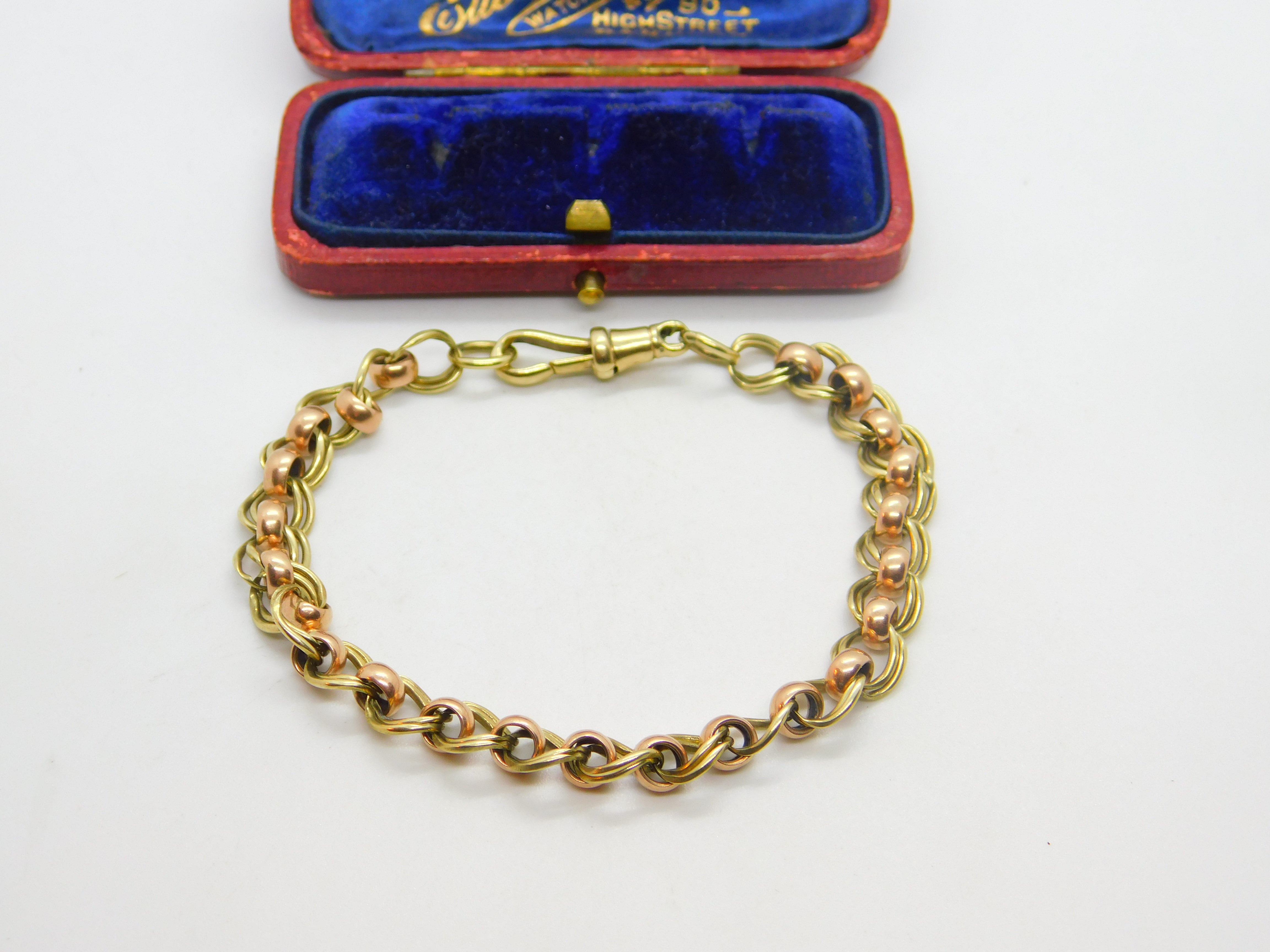 9ct Two-Tone Yellow & Rose Gold Fancy Link Bracelet Antique c1940 Art Deco