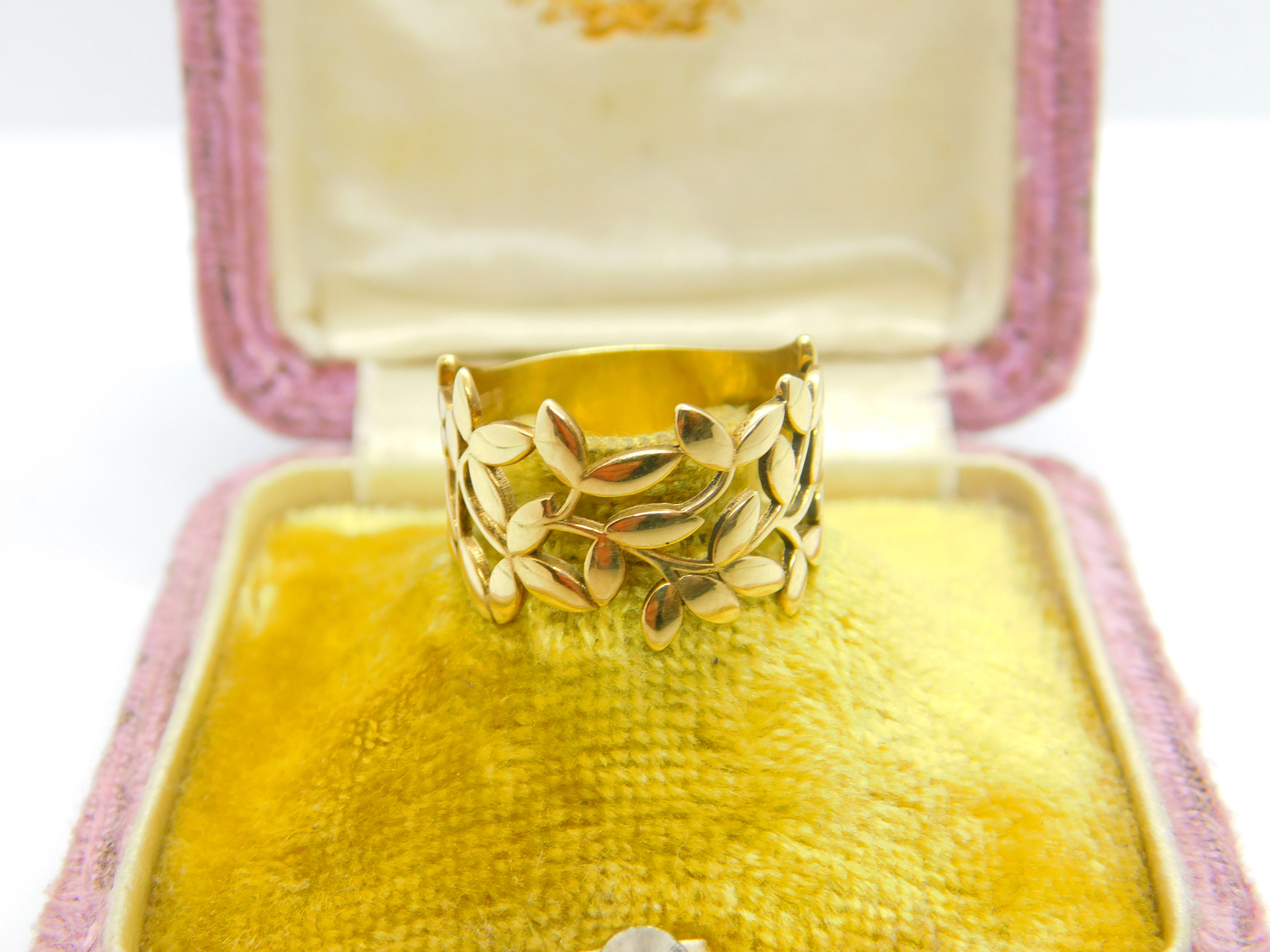 9ct Yellow Gold Band Ring Wreath & Leaf Form Detail Vintage c1990 Birmingham