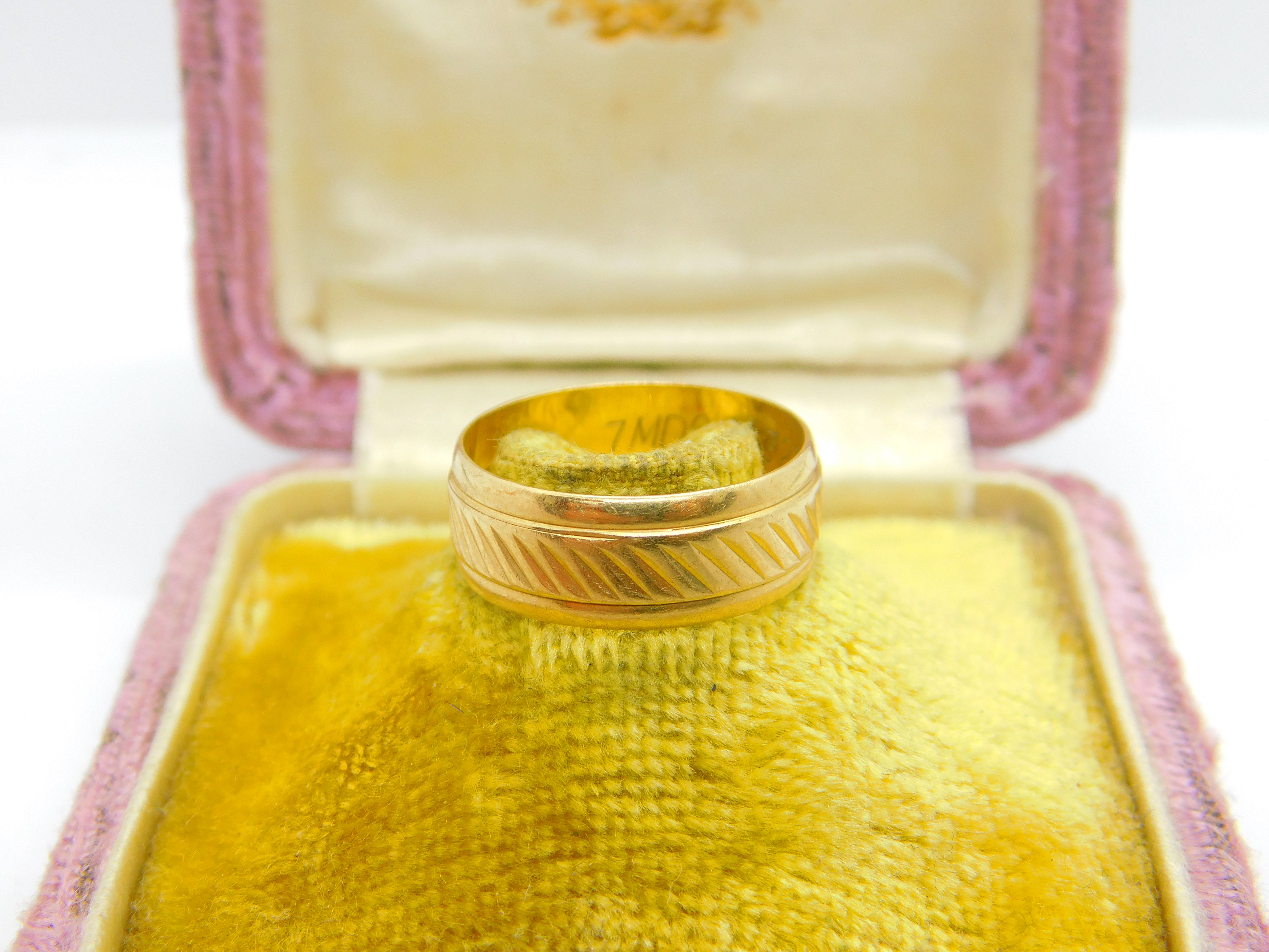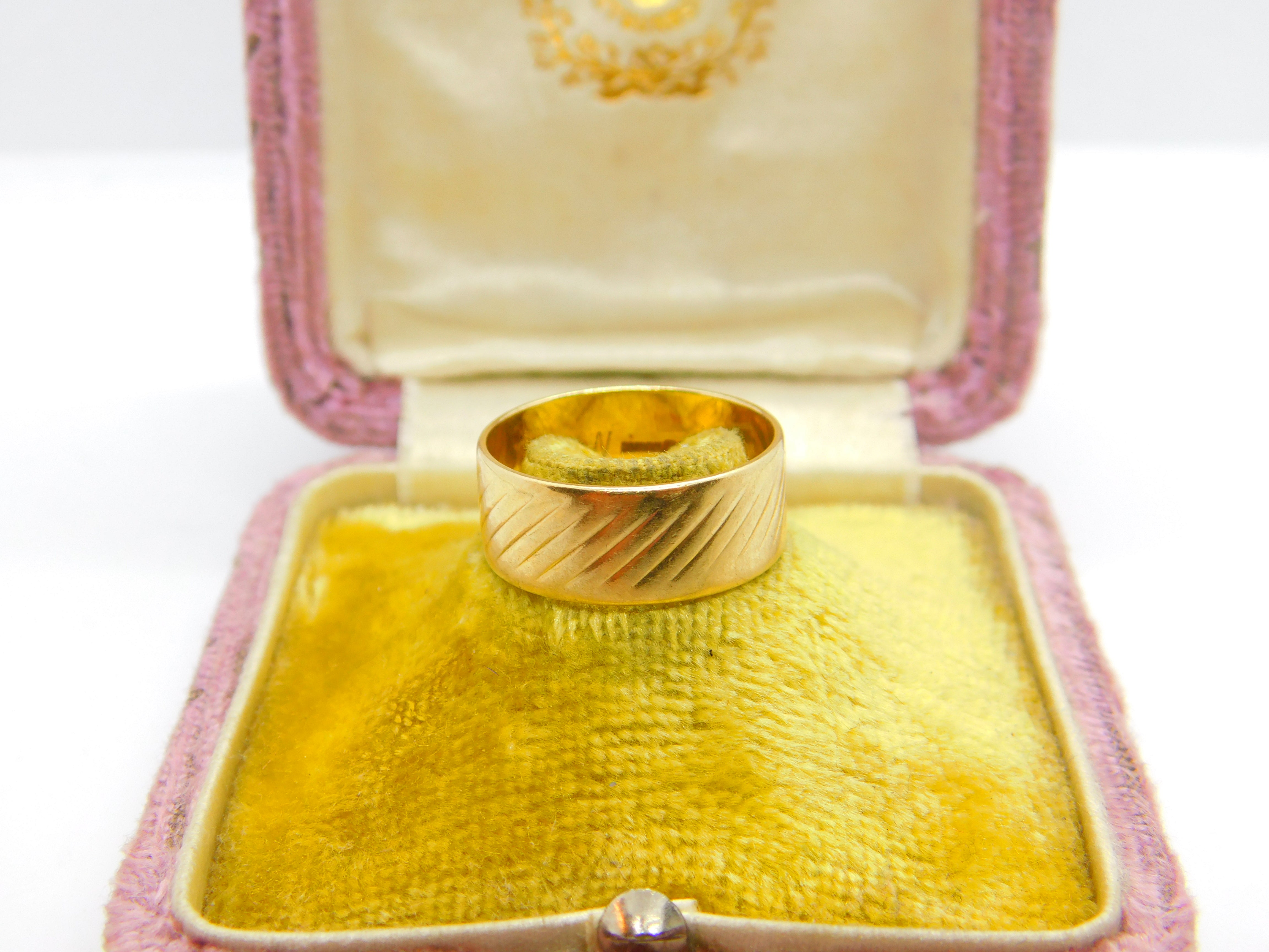 9ct Yellow Gold Feathered Pattern Essential Band Ring Vintage 1967 London