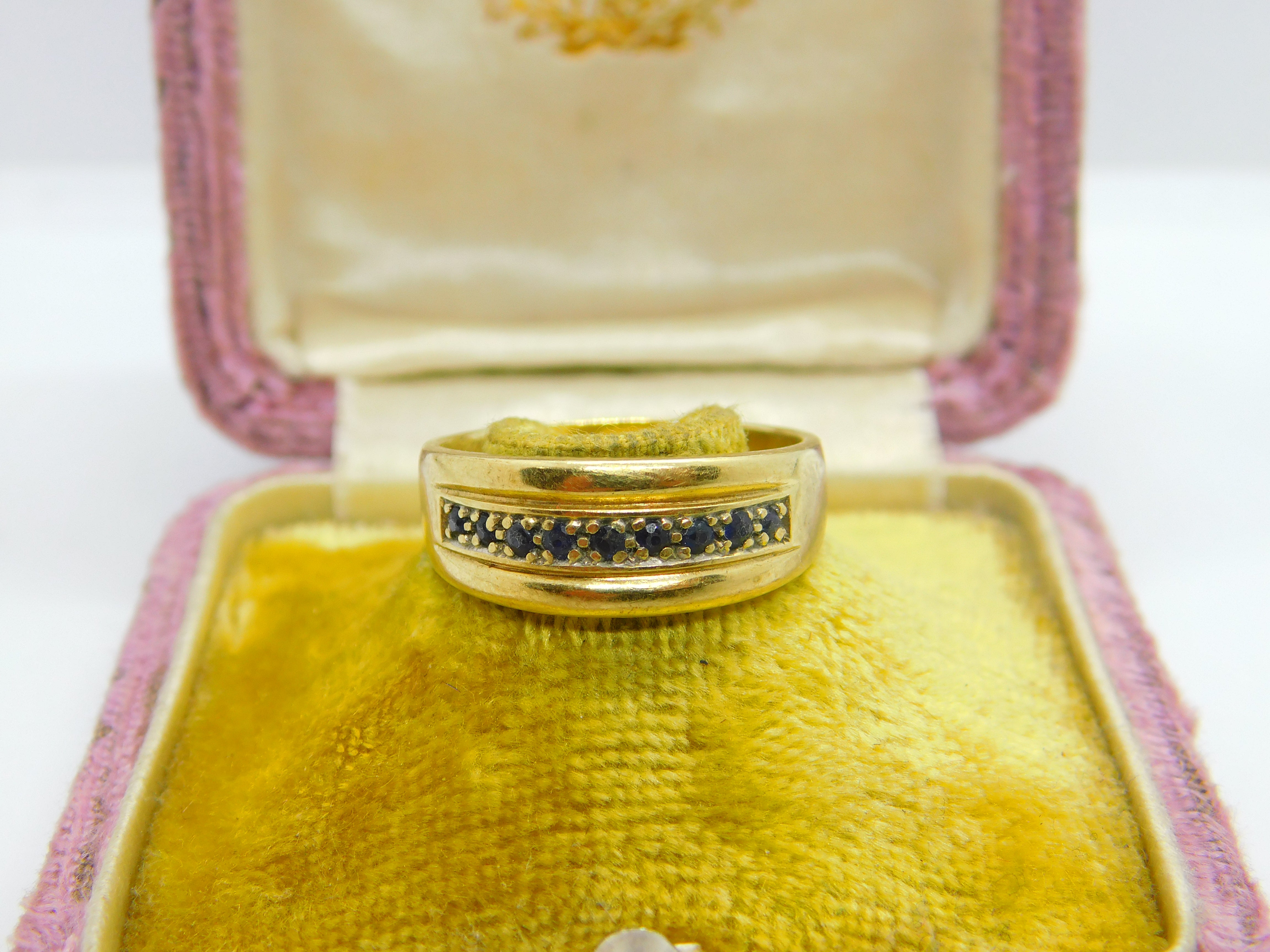 9ct Yellow Gold & Sapphire Set Boat Ring Vintage c1970 Size R 1/2 UK