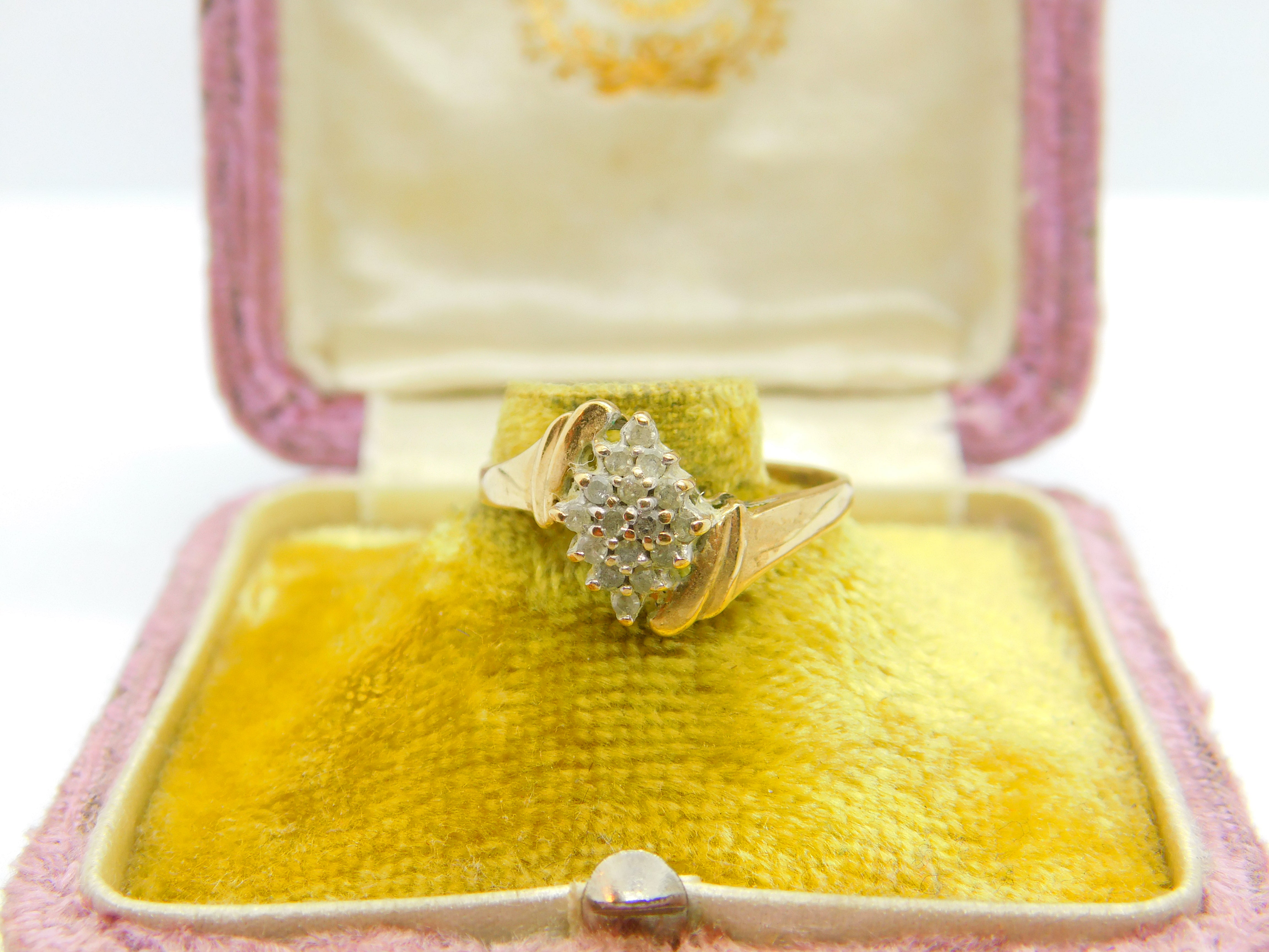 9ct Yellow Gold & Diamond Set Floral Clsuter Ring Vintage c1970 Sheffield