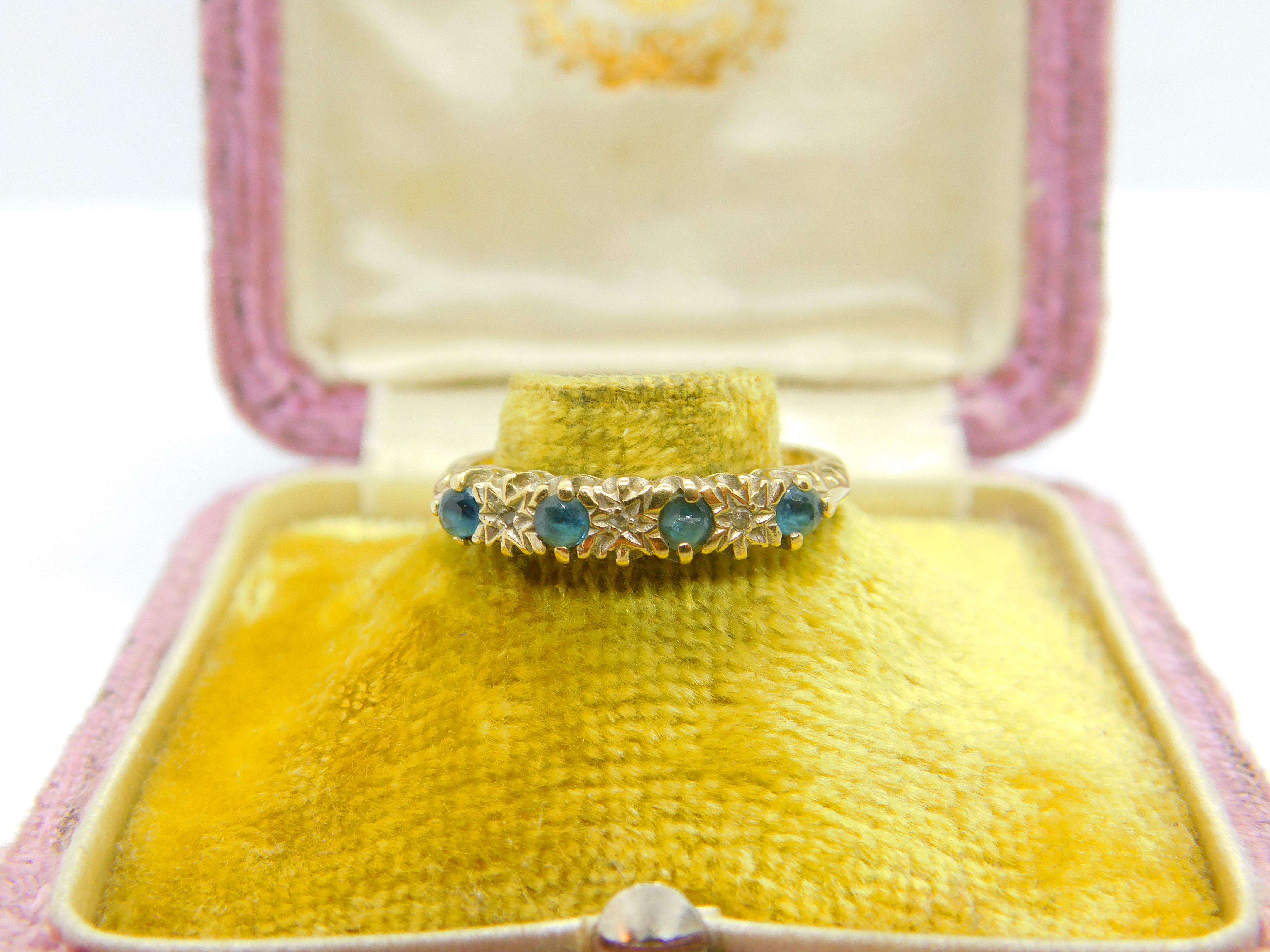 9ct Yellow Gold, Sapphire & Diamond Half Eternity Ring Vintage c1970