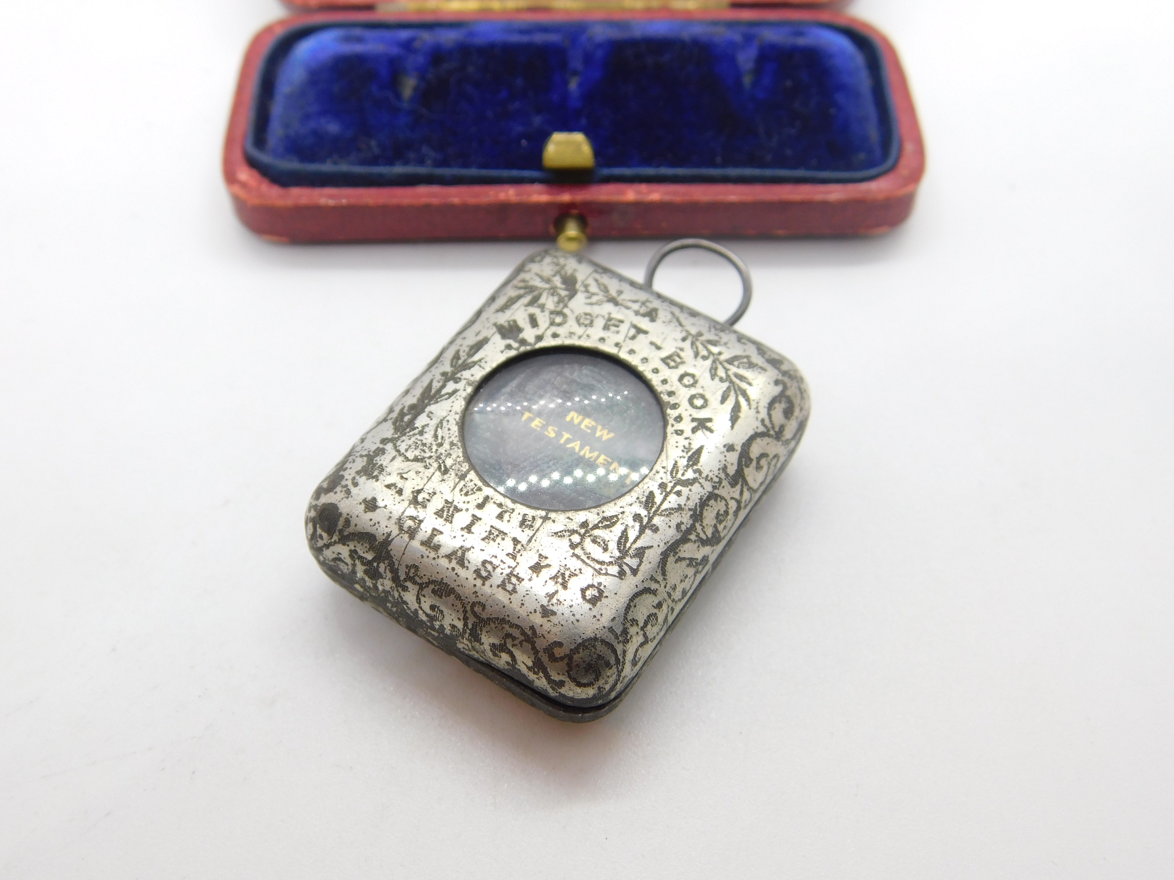 Victorian Silver Plated 'Midget Book' Case with Miniature Bible Antique c1880