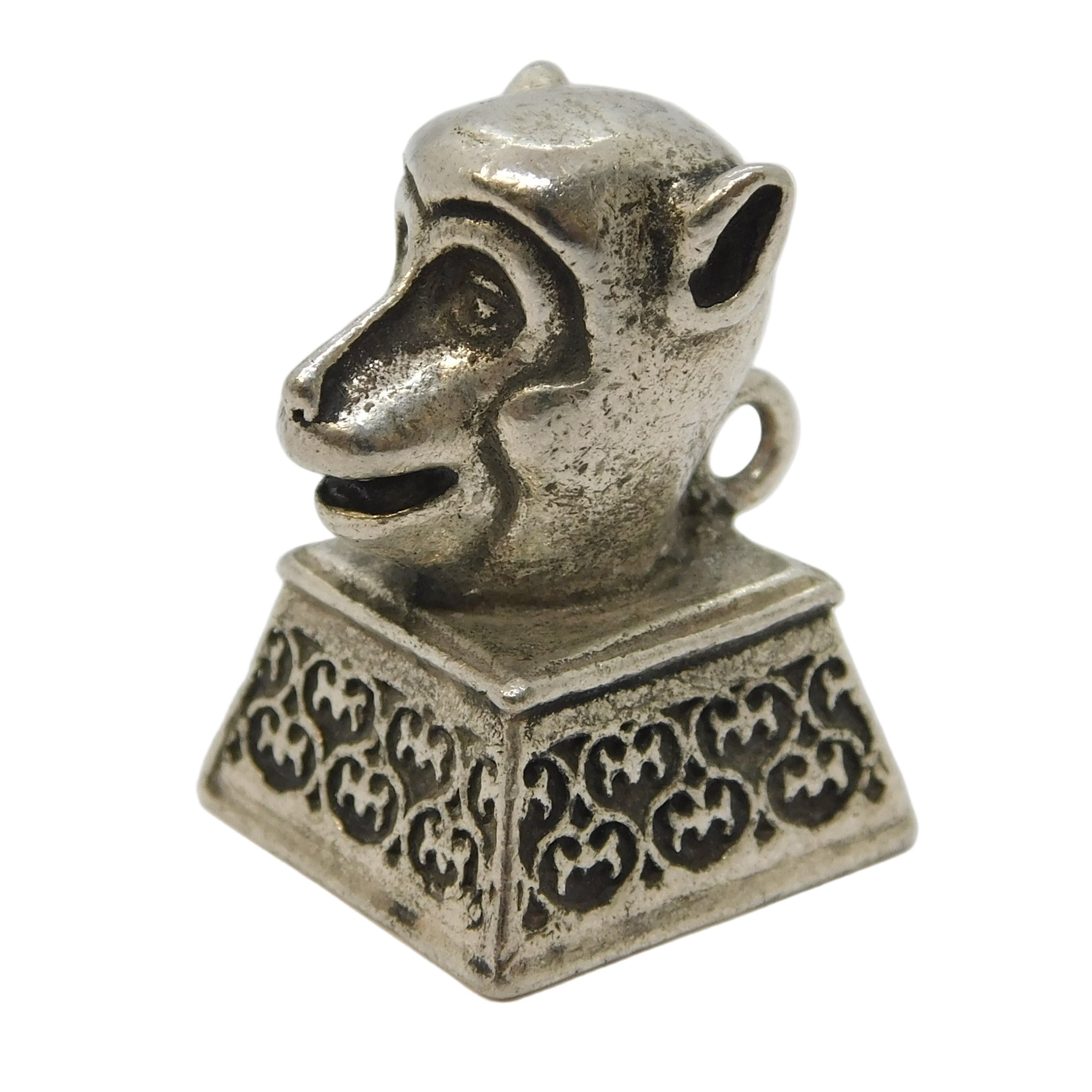 20th Century Chinese White Metal Year of the Monkey Seal Fob Pendant Antique
