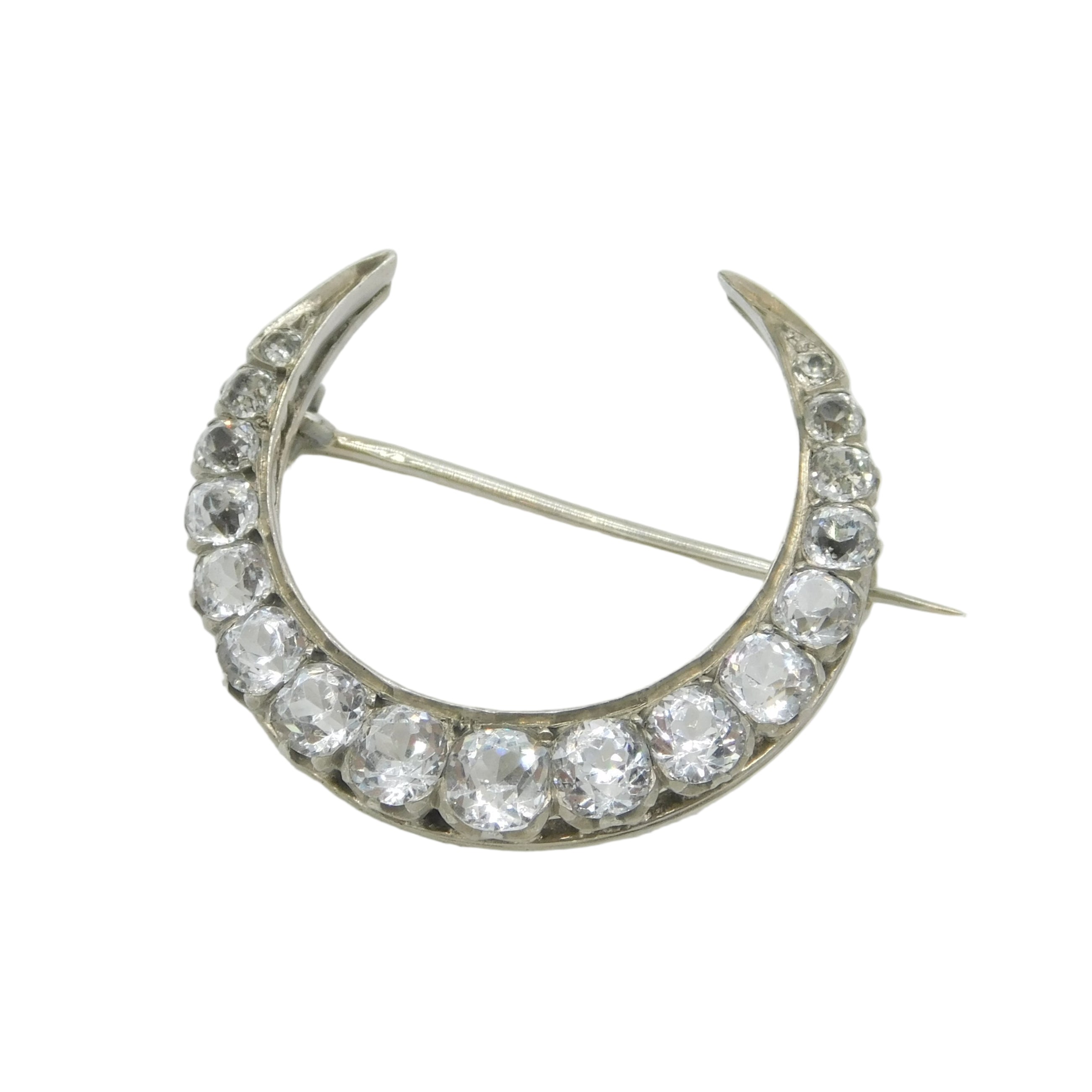 19th Century French Belle Epoque .950 Silver & Paste Crescent Brooch Antique c1880