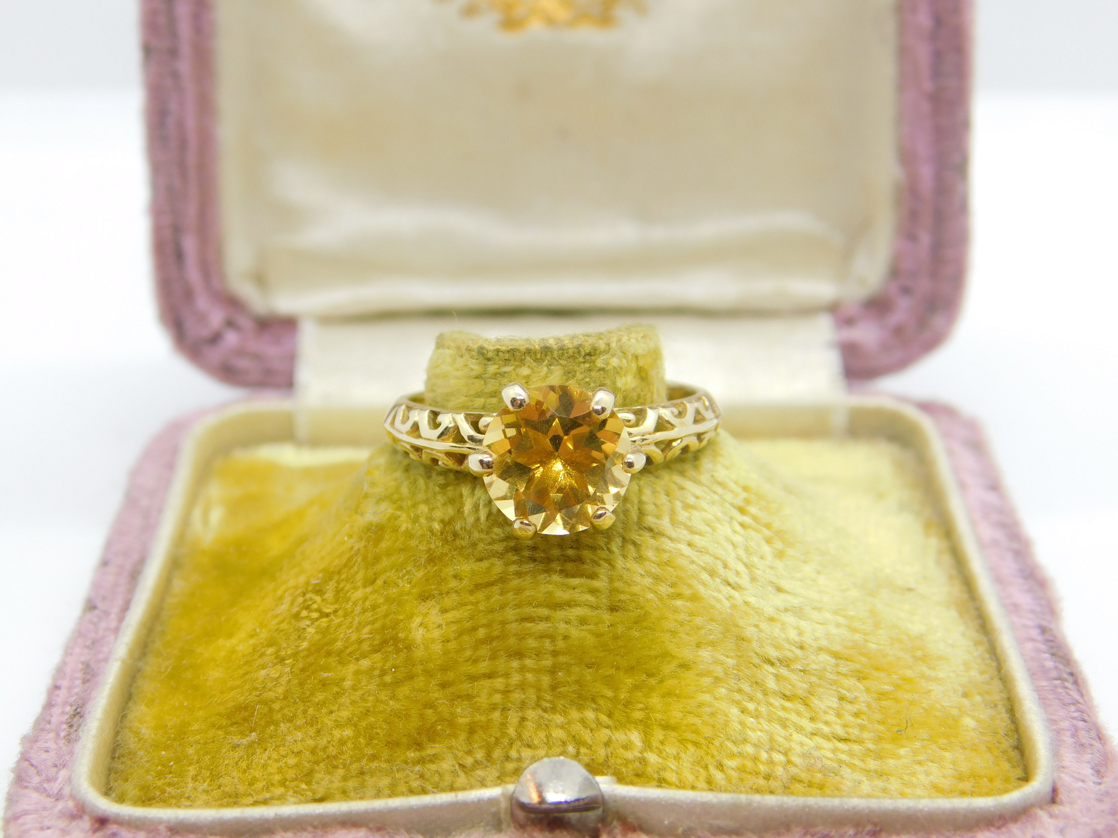 9ct Yellow Gold Cushion Cut Citrine Solitaire Ring Vintage c1970 Birmingham