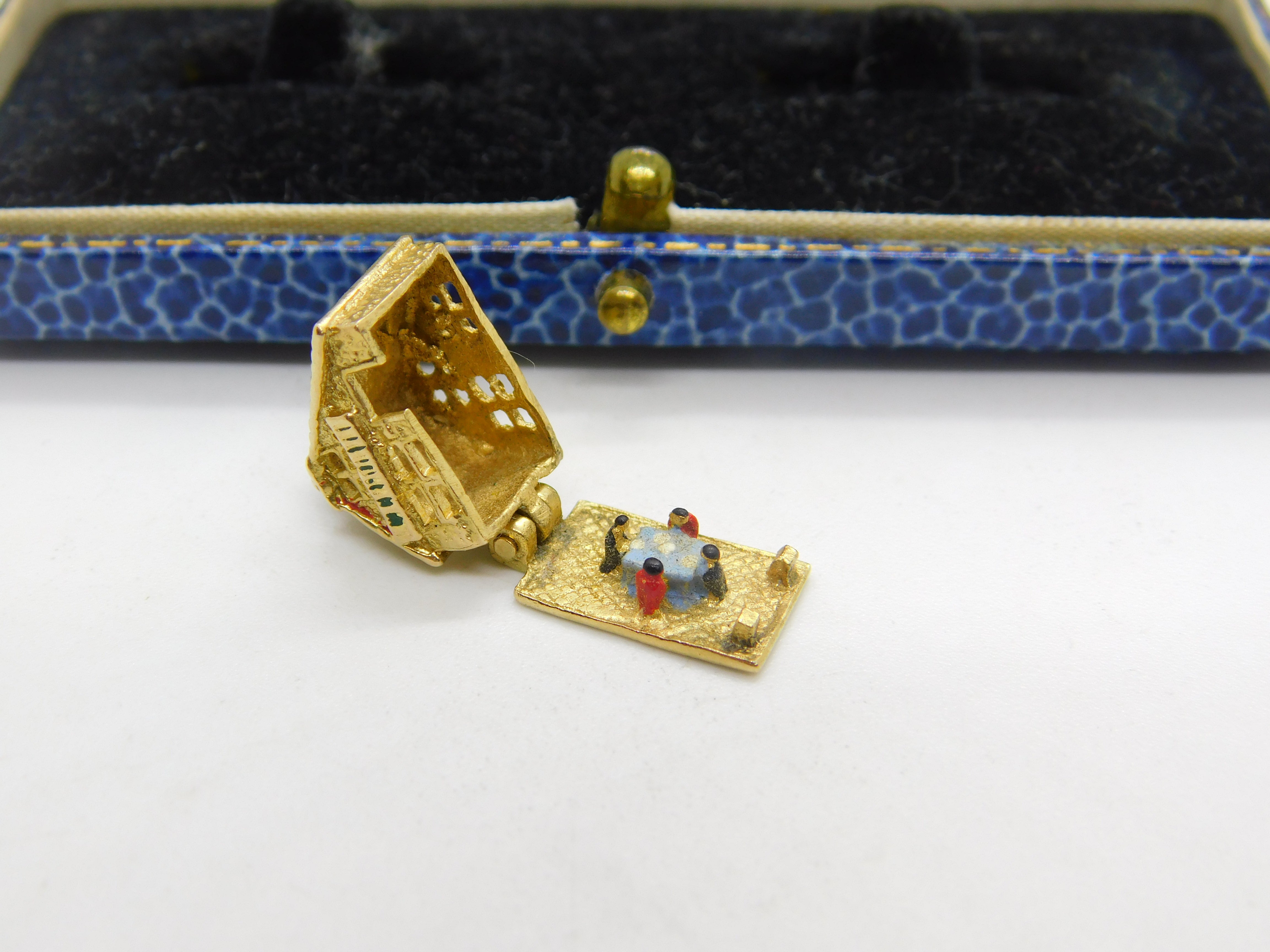 9ct Yellow Gold & Enamel Family at the Dinner Table Opening Charm Vintage