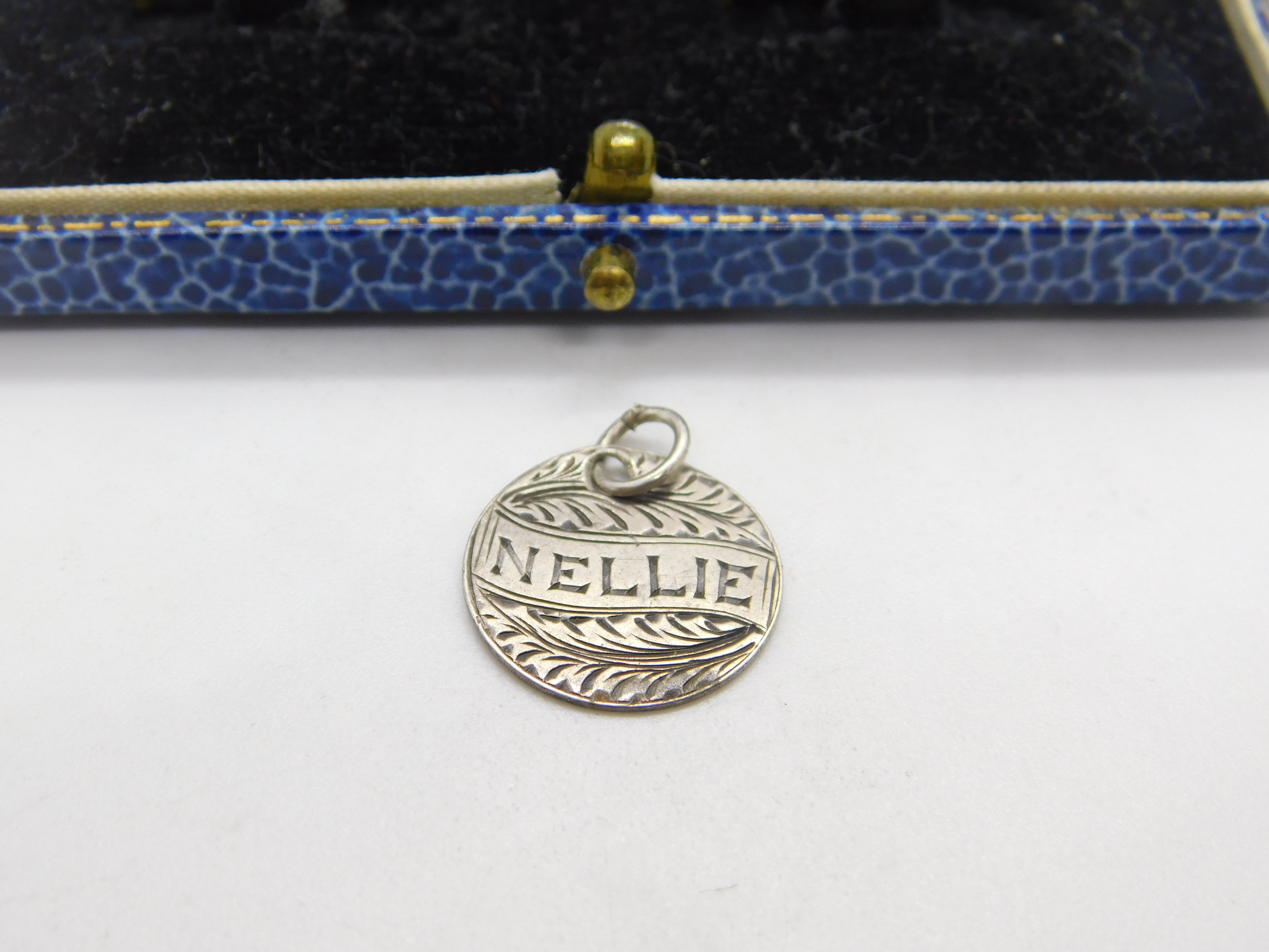 Victorian Sterling Silver 'Nellie' Love Token Charm Pendant Threepence c1885