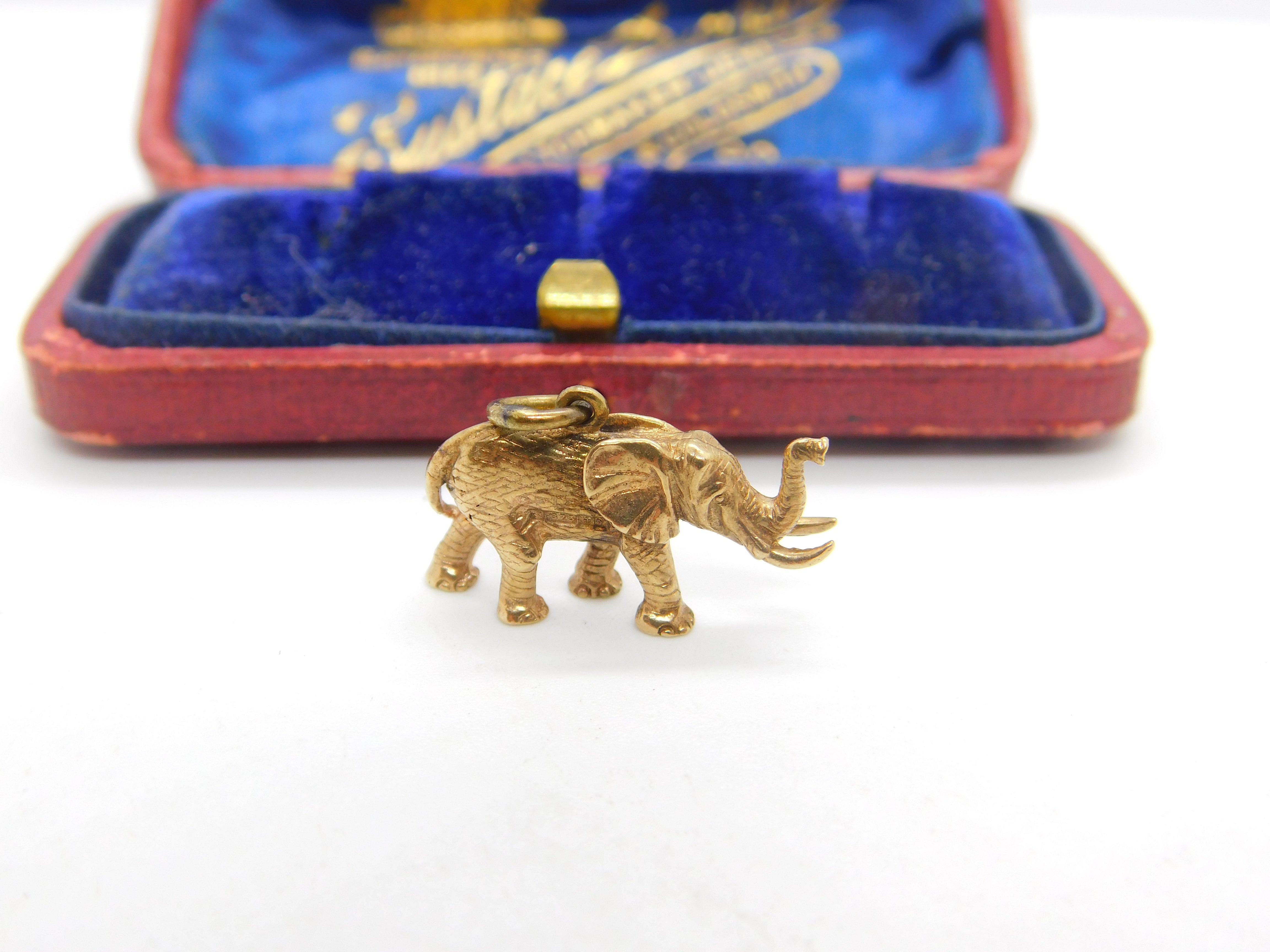Lucky Elephant 9ct Yellow Gold English Charm Pendant Vintage 1973 Birmingham