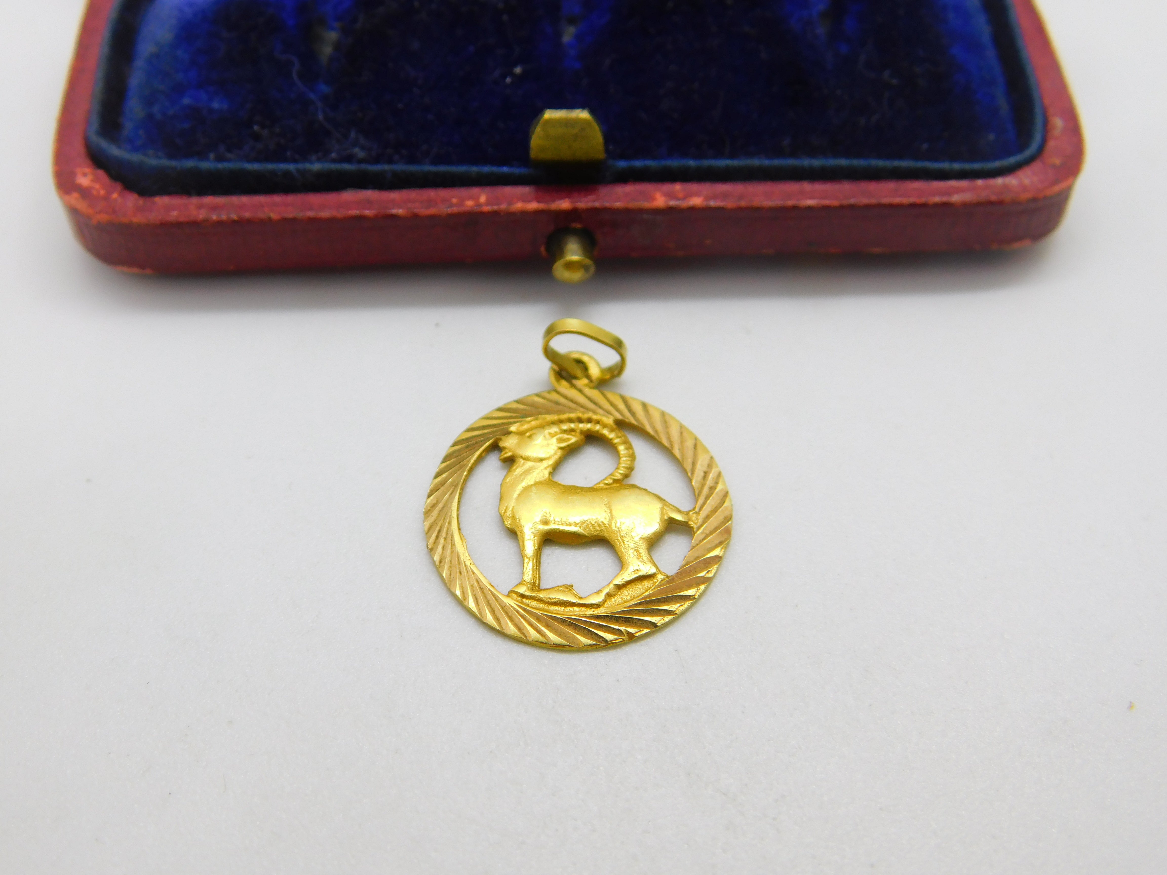18ct Yellow Capricorn the Goat Zodiac Star Sign Charm Pendant Vintage c1970