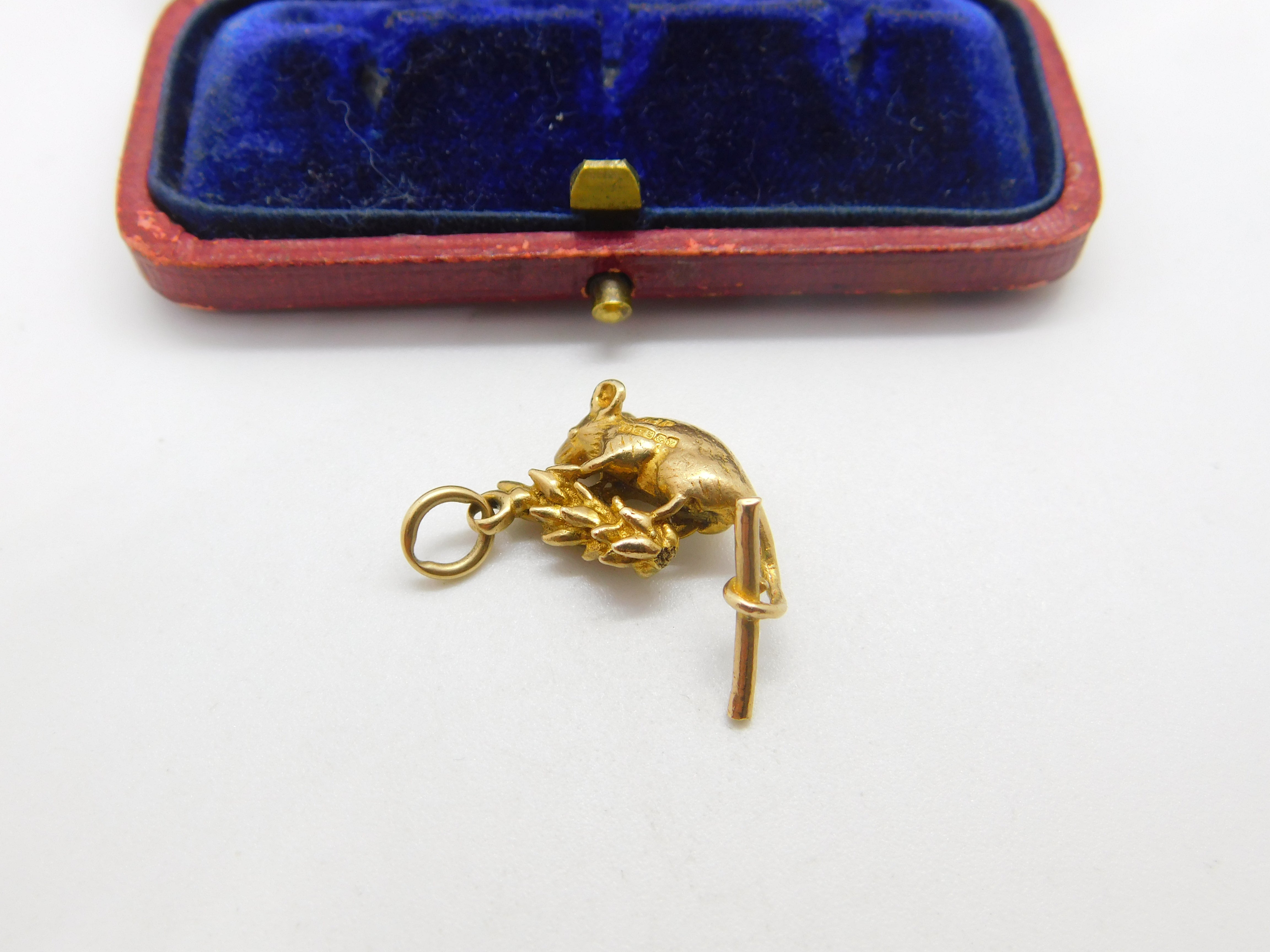 Harvest Mouse on Wheat Sheaf 9ct Gold English Charm Pendant Vintage 1973 Birmingham