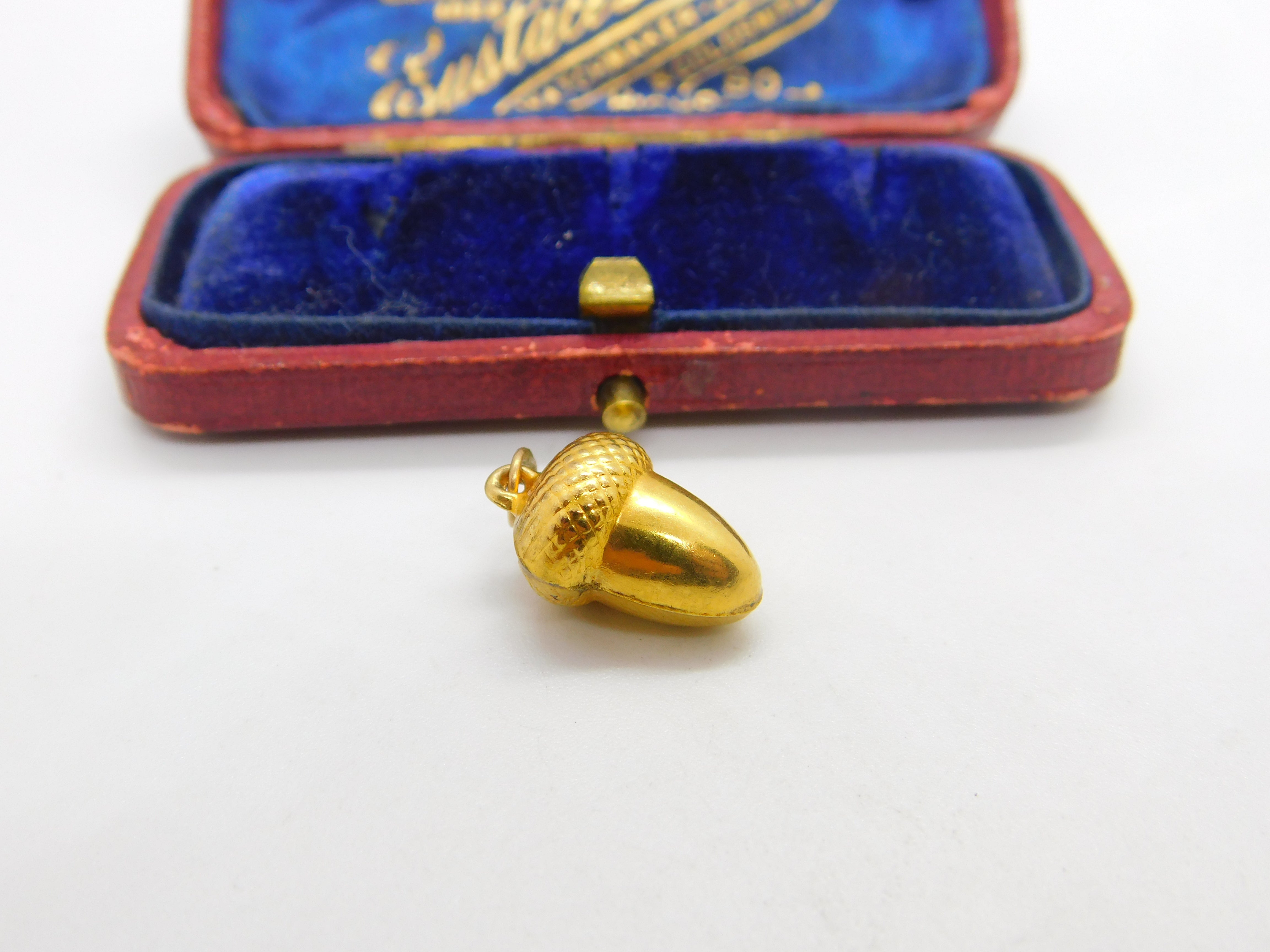 Lucky Acorn 9ct Yellow Gold English Charm Pendant Vintage 1971 Birmingham