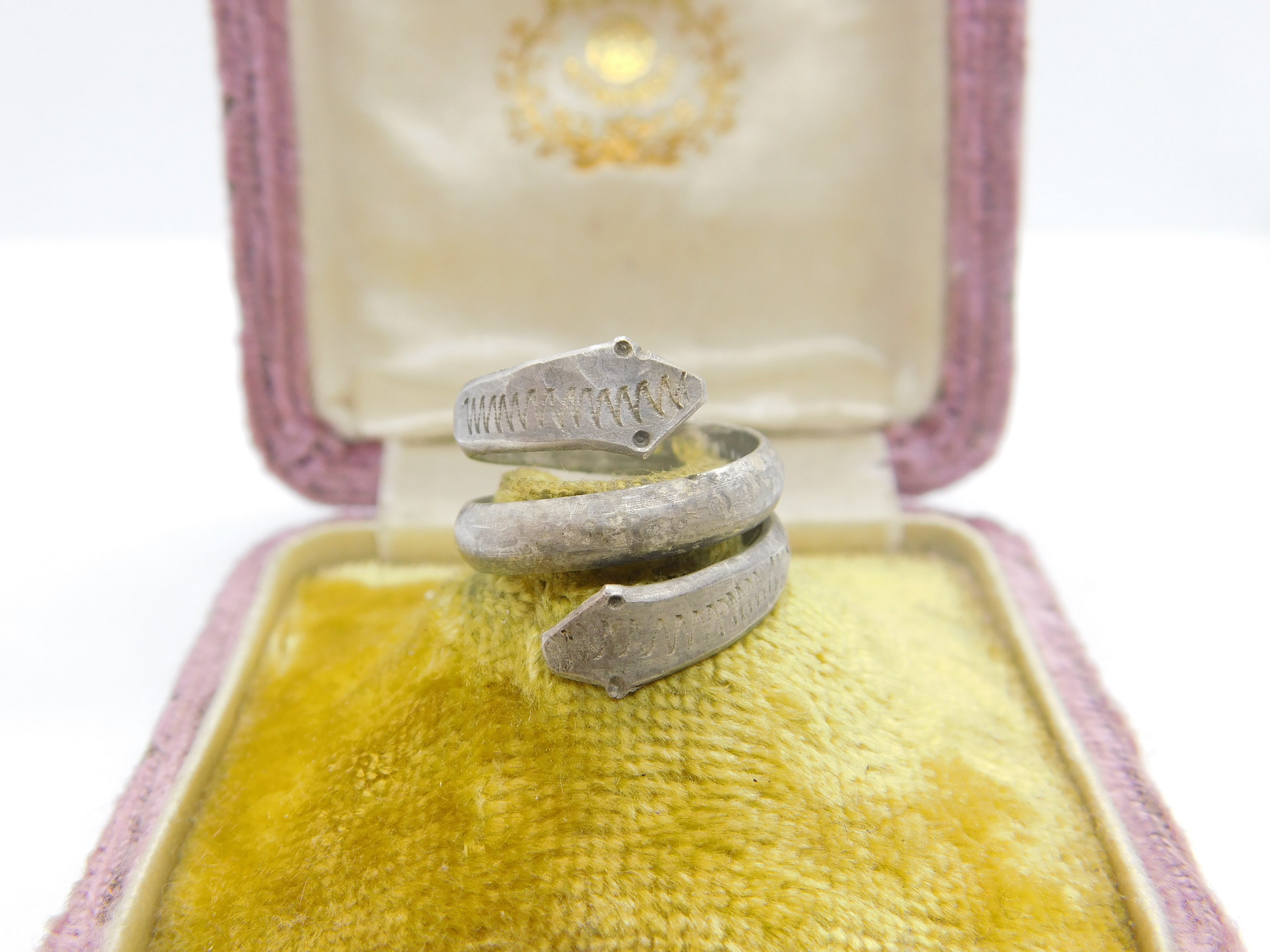 Ancient Roman Silver Double Serpent Ring circa 2nd Century Detecting Egyptian