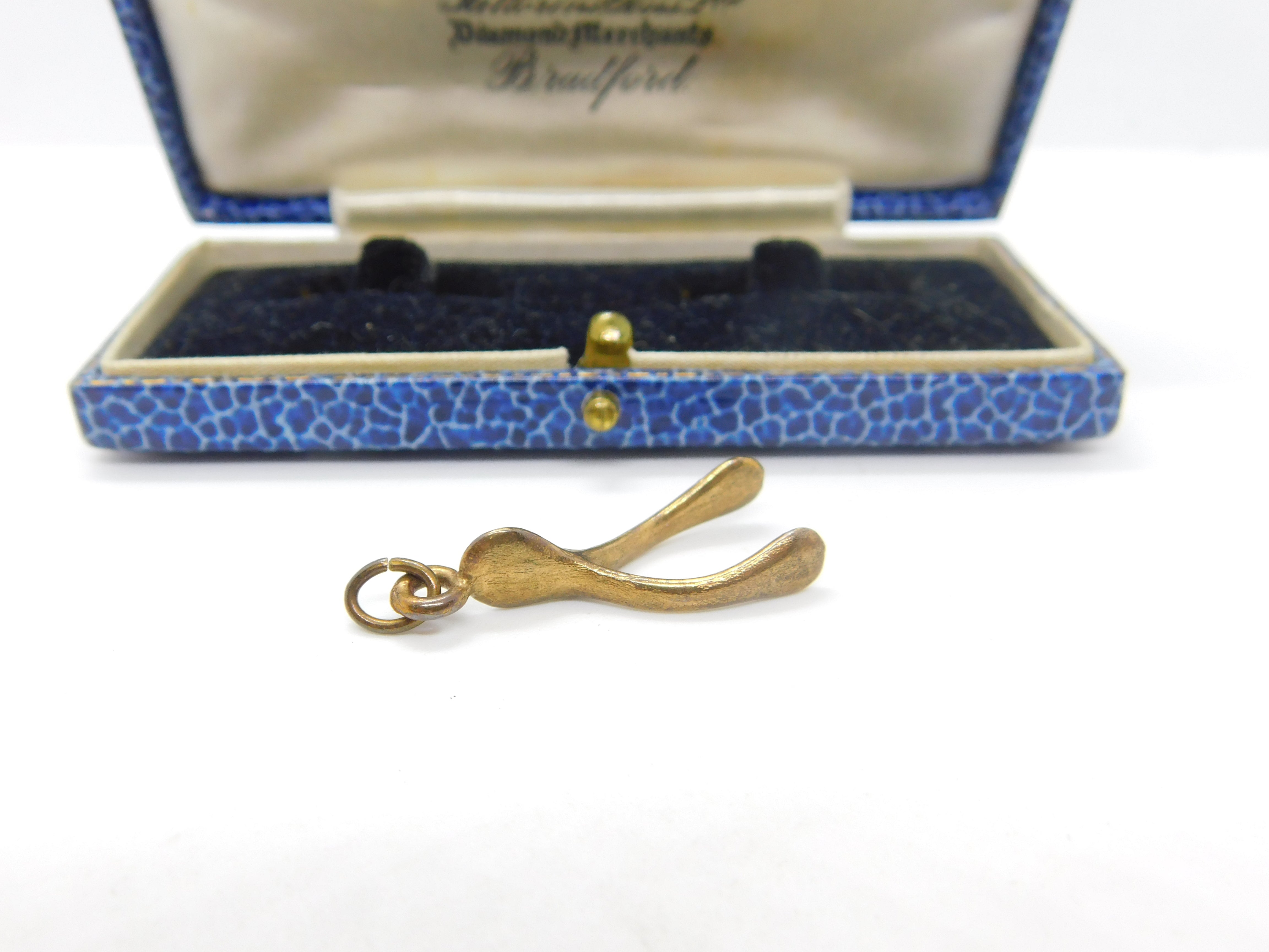 9ct Yellow Gold Wishbone Form Charm or Pendant Vintage 1979 London