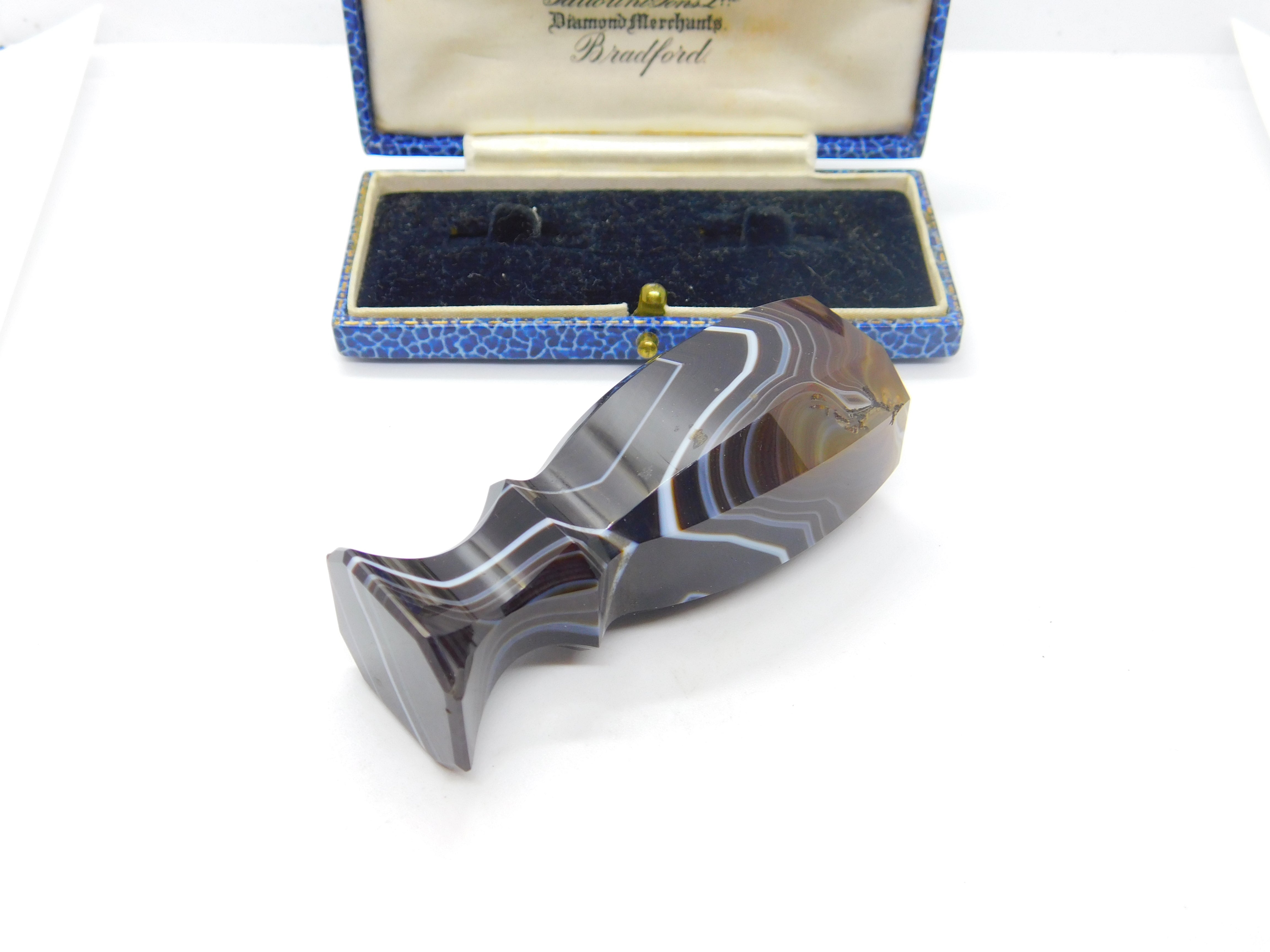 Victorian Carved Banded Agate Uncut Desk Seal Stamp Antique c1880