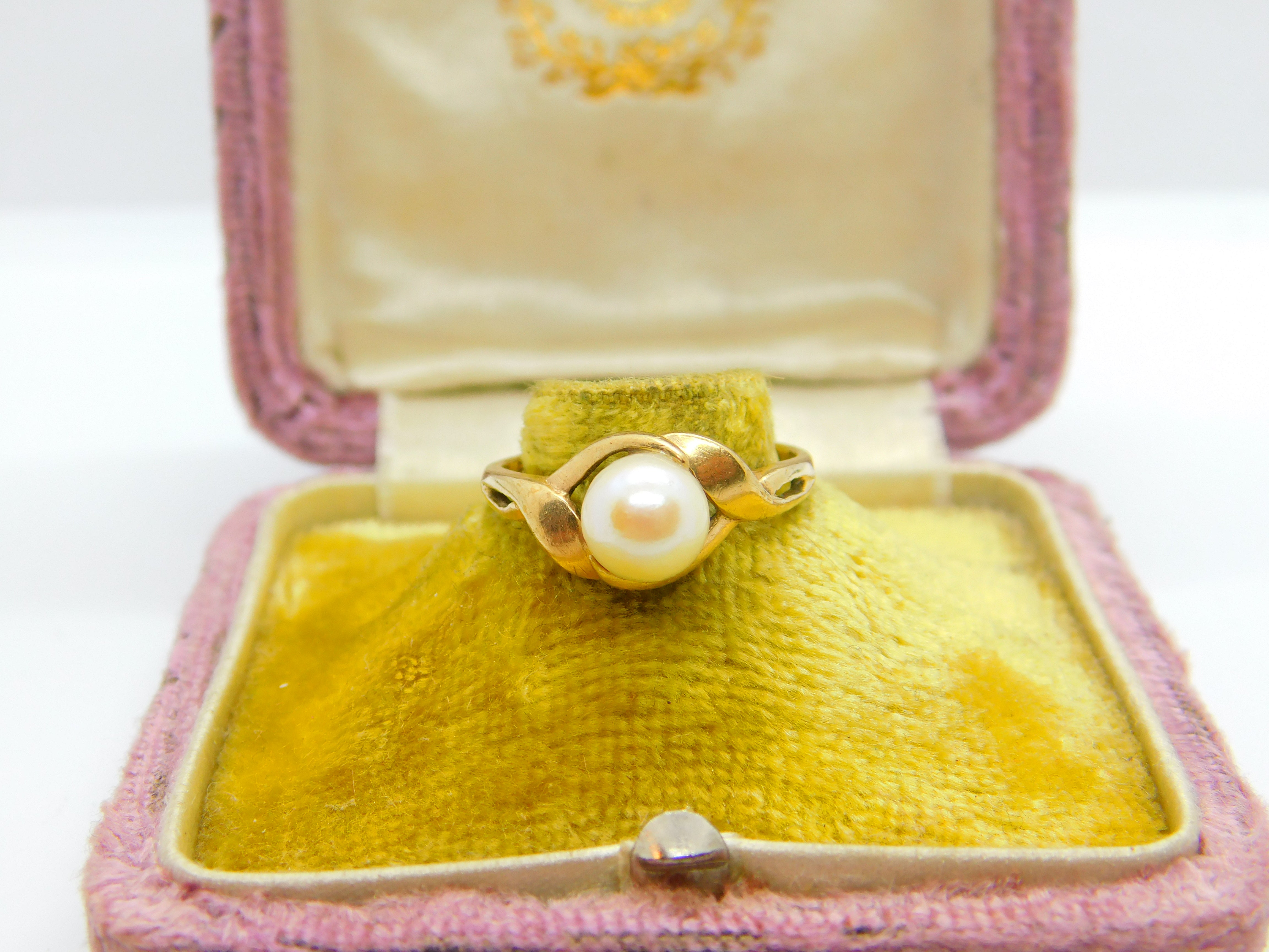 9ct Yellow Gold & Pearl Set Band Ring Vintage 1984 London